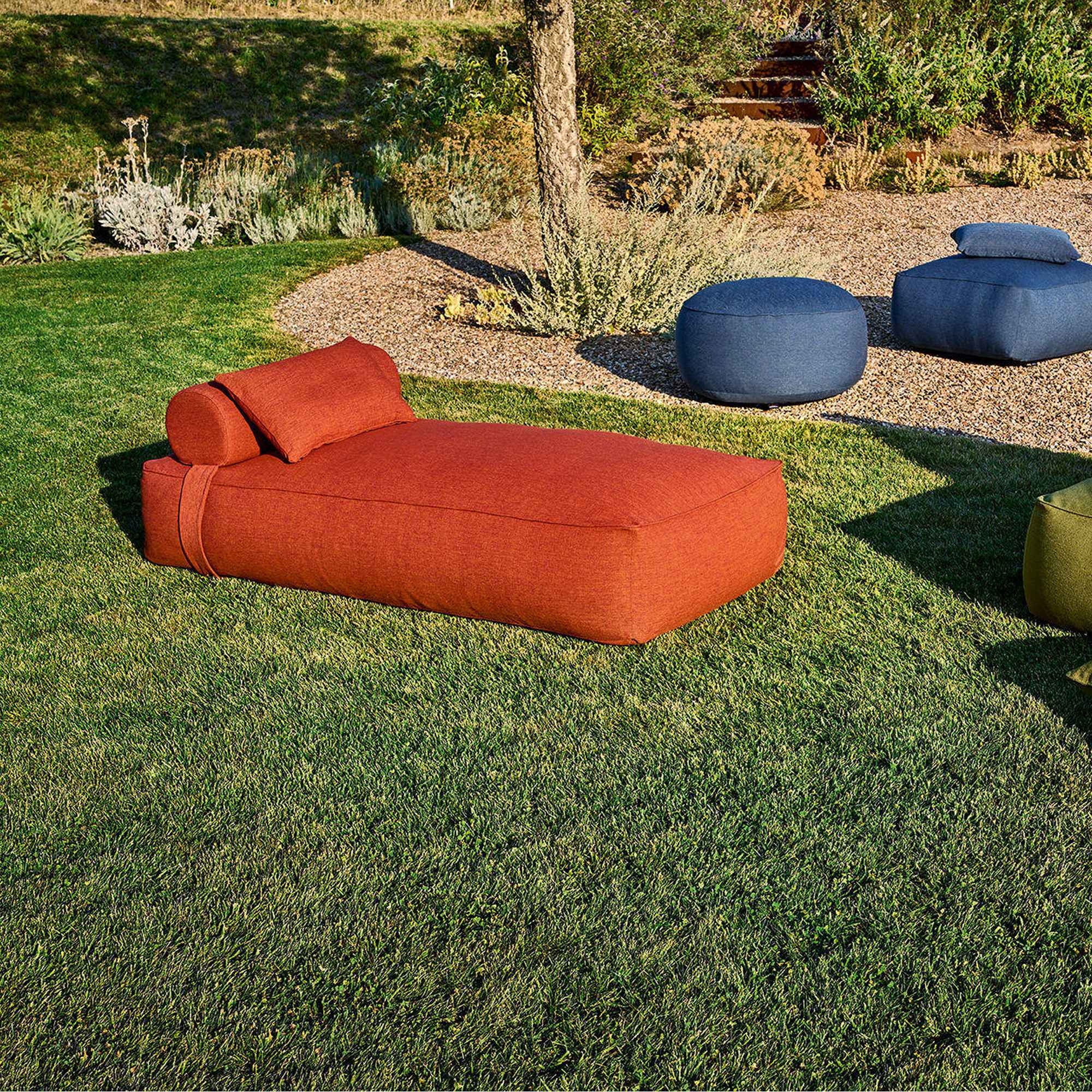 Maliha outdoor lounge bed, measuring 200x80x35h cm, crafted with microbead polystyrene padding and synthetic wool in a water-resistant polyester cover, cushions made from mass-dyed yarn with UV protection and antioxidants, 100% recyclable polypropylene, free from hazardous substances, allergen-free according to OEKO-TEX standards, and 100% resistant to mold and bacteria. Available in 5 colors, the Maliha outdoor sunbed boasts a welcoming design, offering not just softness and comfort to the touch, but also robust stability. The Maliha outdoor lounge bed exceeds all expectations in terms of durability. Its covering, made from high-quality Italian yarn, guarantees extended resistance to sunlight, salt, chlorine, and stains. A reliable and long-lasting companion for every magical moment spent outdoors. Created by Weishäupl.