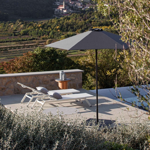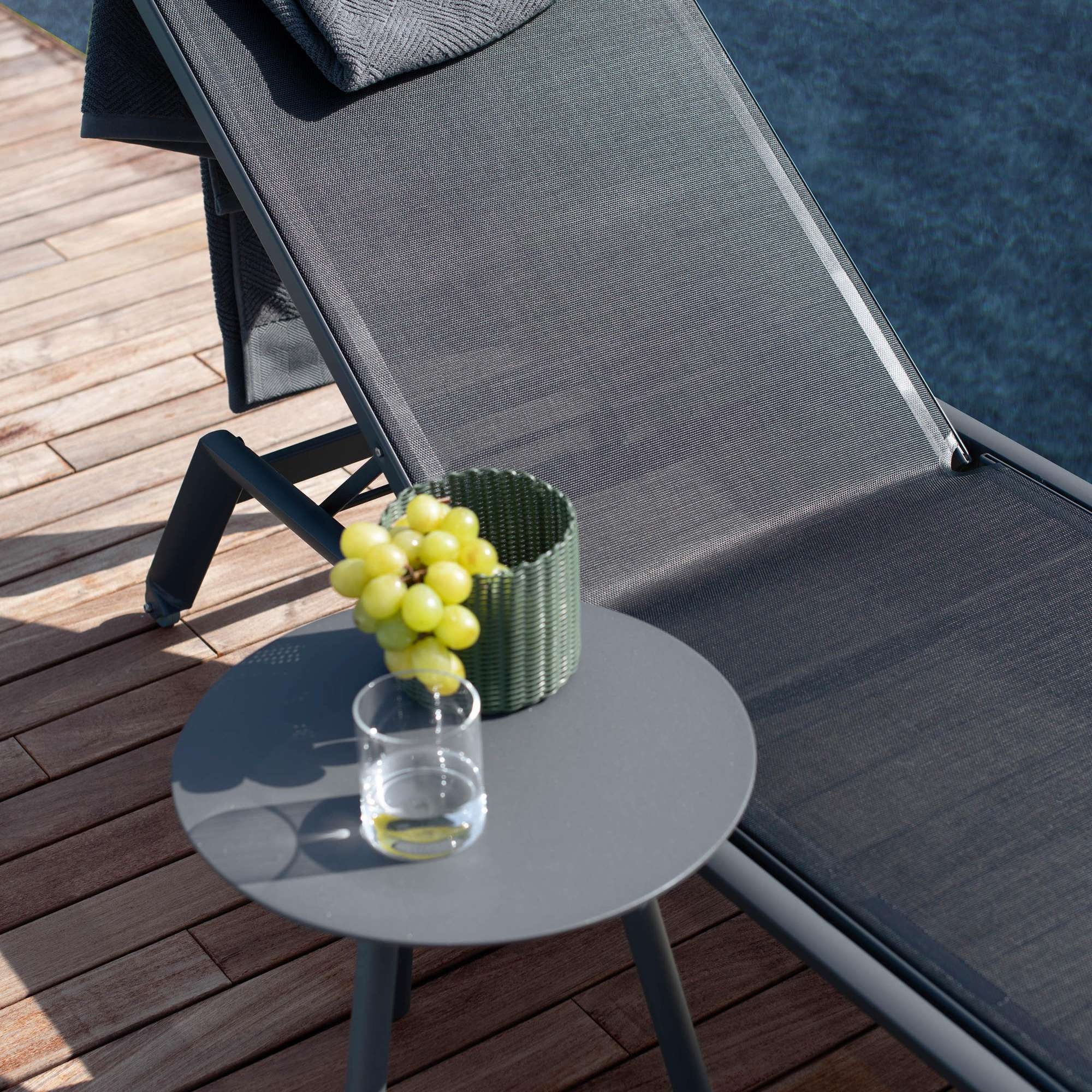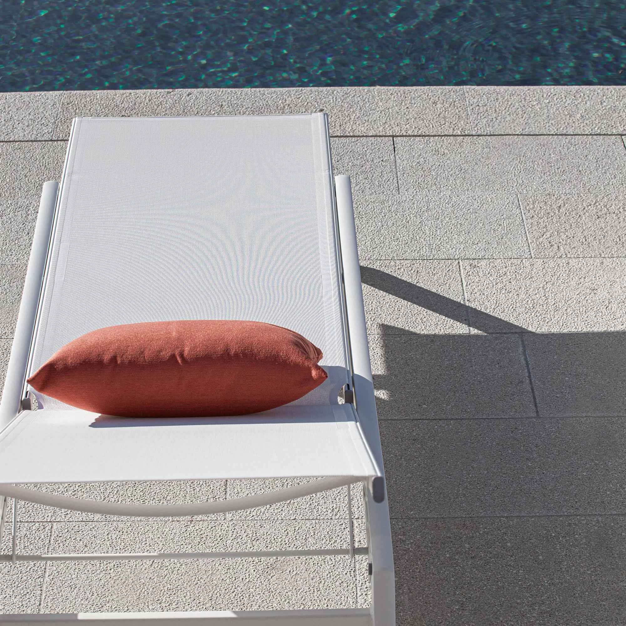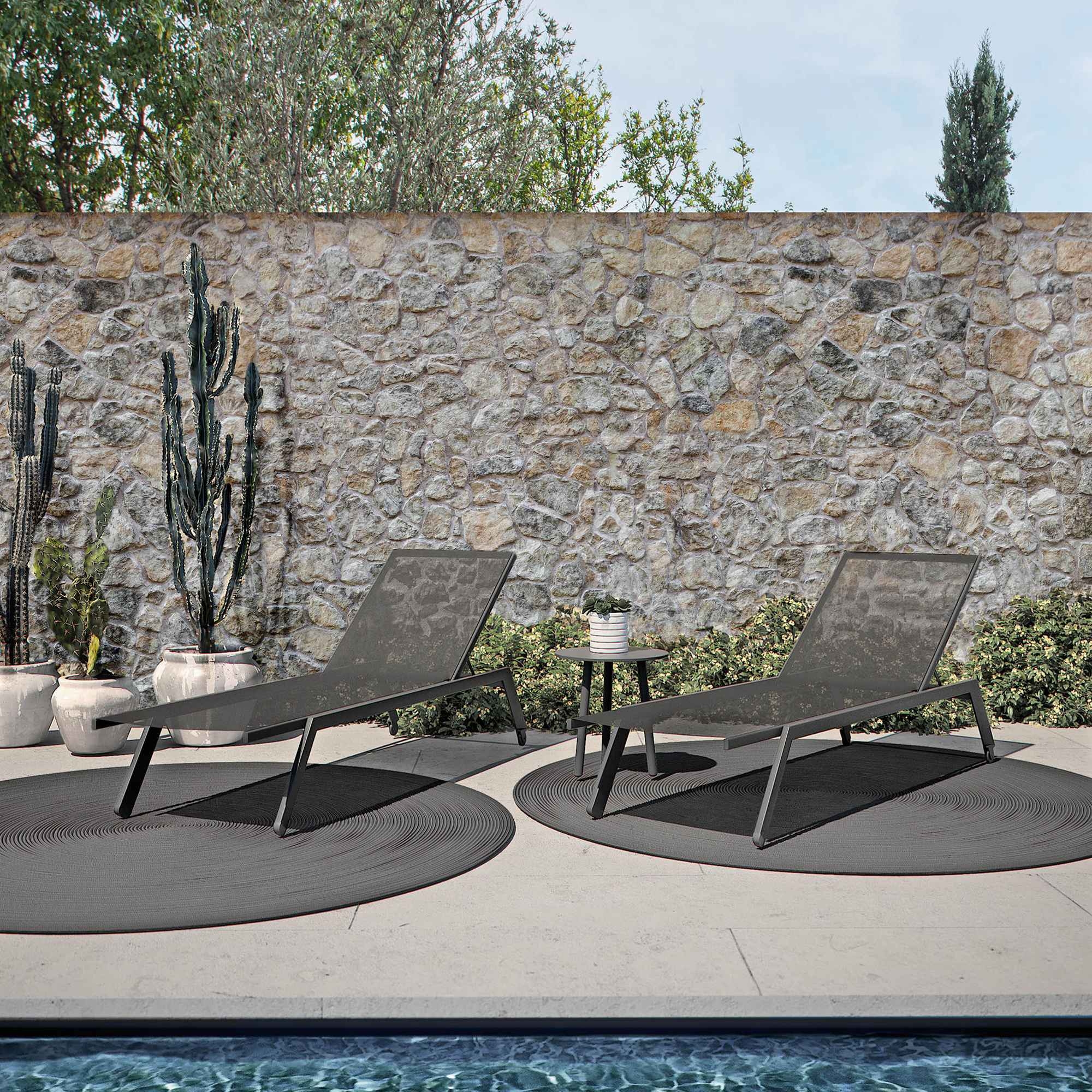 Maximize your outdoor relaxation with the Maxim outdoor sunbed, featuring an aluminum frame and a seat and backrest made from technically advanced, heat-welded micro-perforated fabric suitable for outdoor use. Available in 2 colors, the Maxim outdoor sunbed is the perfect addition to enhance any outdoor space. Thanks to its adjustable backrest, this garden sunbed allows you to find the perfect position for your outdoor relaxation. Equipped with 2 wheels, the Maxim sunbed is easy to move, allowing you to follow the sun or shade throughout the day. Moreover, the smart design makes it stackable, facilitating storage during the less sunny months. Whether you are looking for a relaxing nook to read a book outdoors, a comfortable spot to enjoy the sun, or simply a stylish addition to enrich your outdoor space, the Maxim outdoor sunbed is the ideal choice. Don't compromise on quality: choose the comfort, elegance, and practicality of the Maxim sunbed to transform any outdoor environment into an oasis of relaxation and beauty. Designed by Atmosphera Creative Lab.