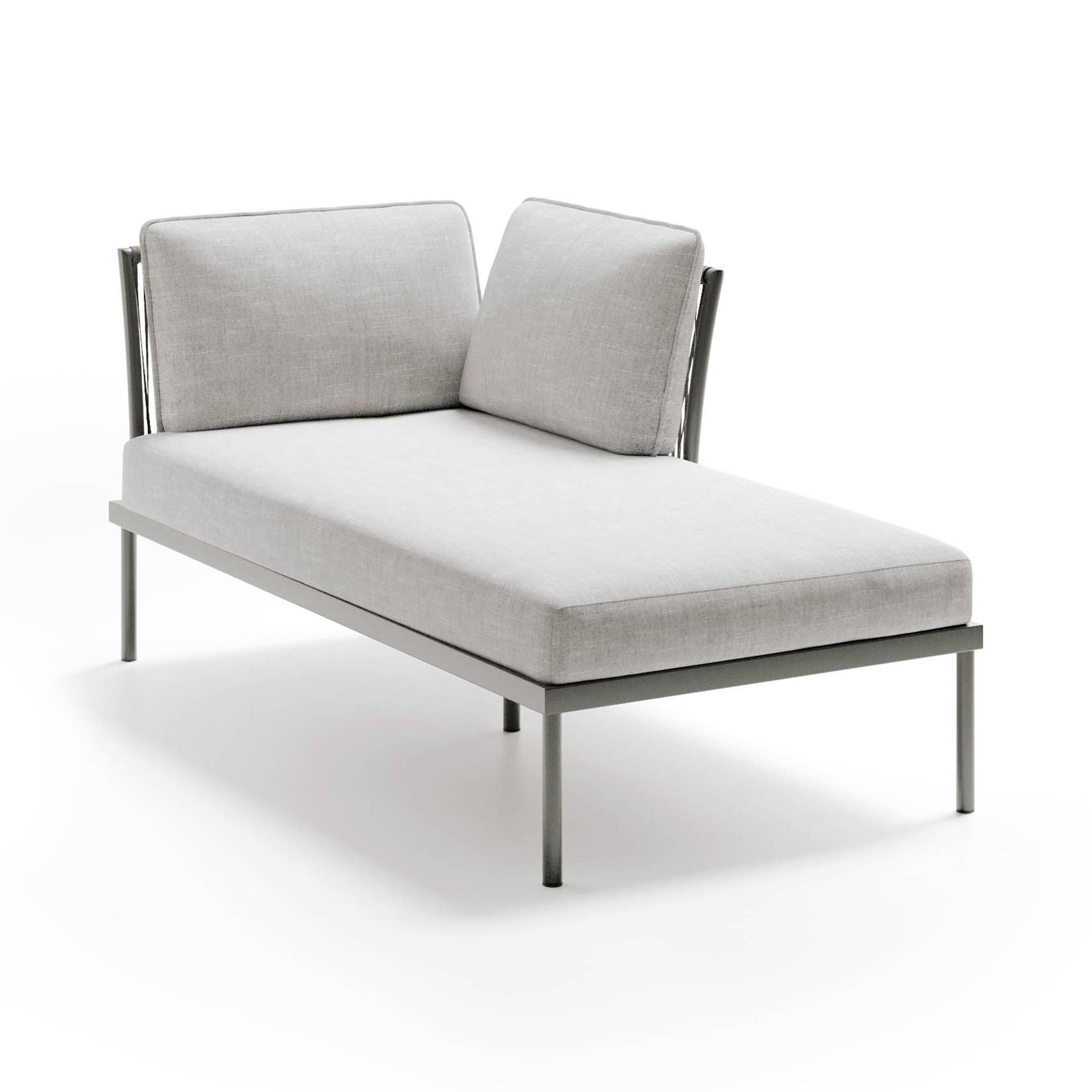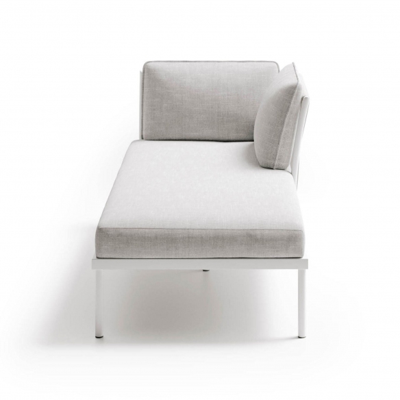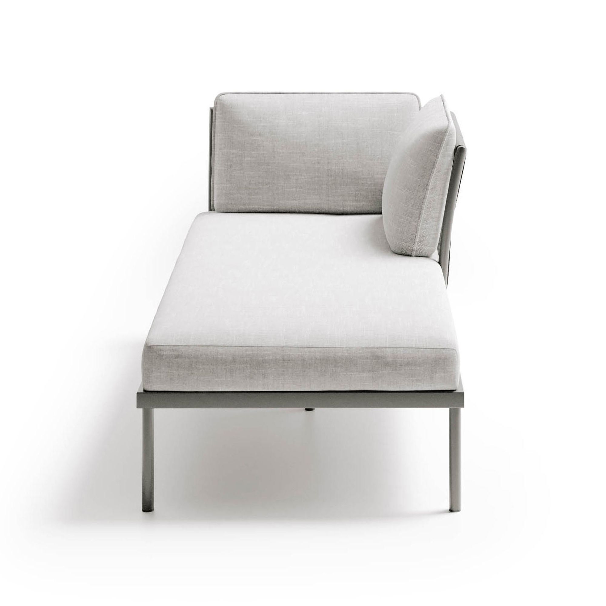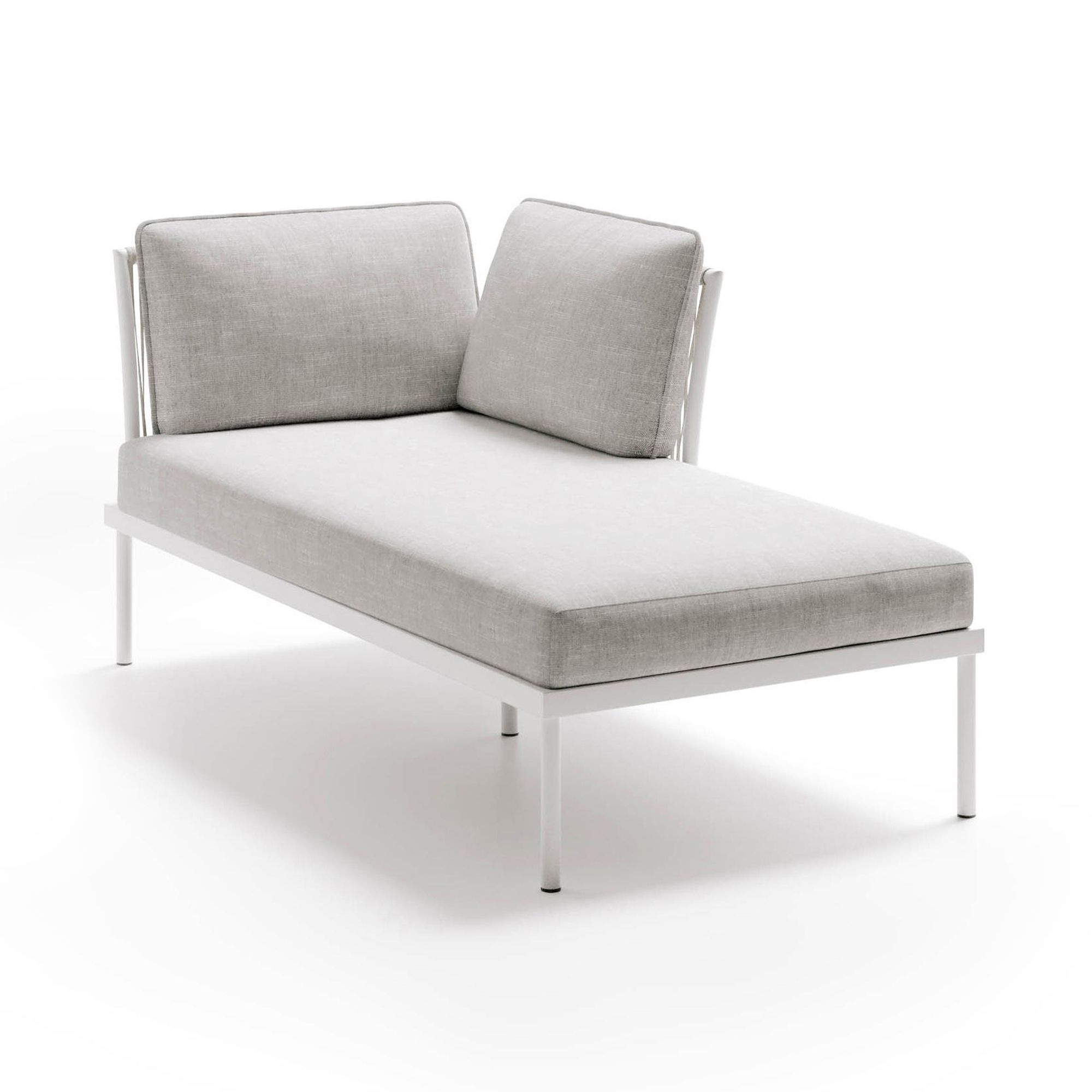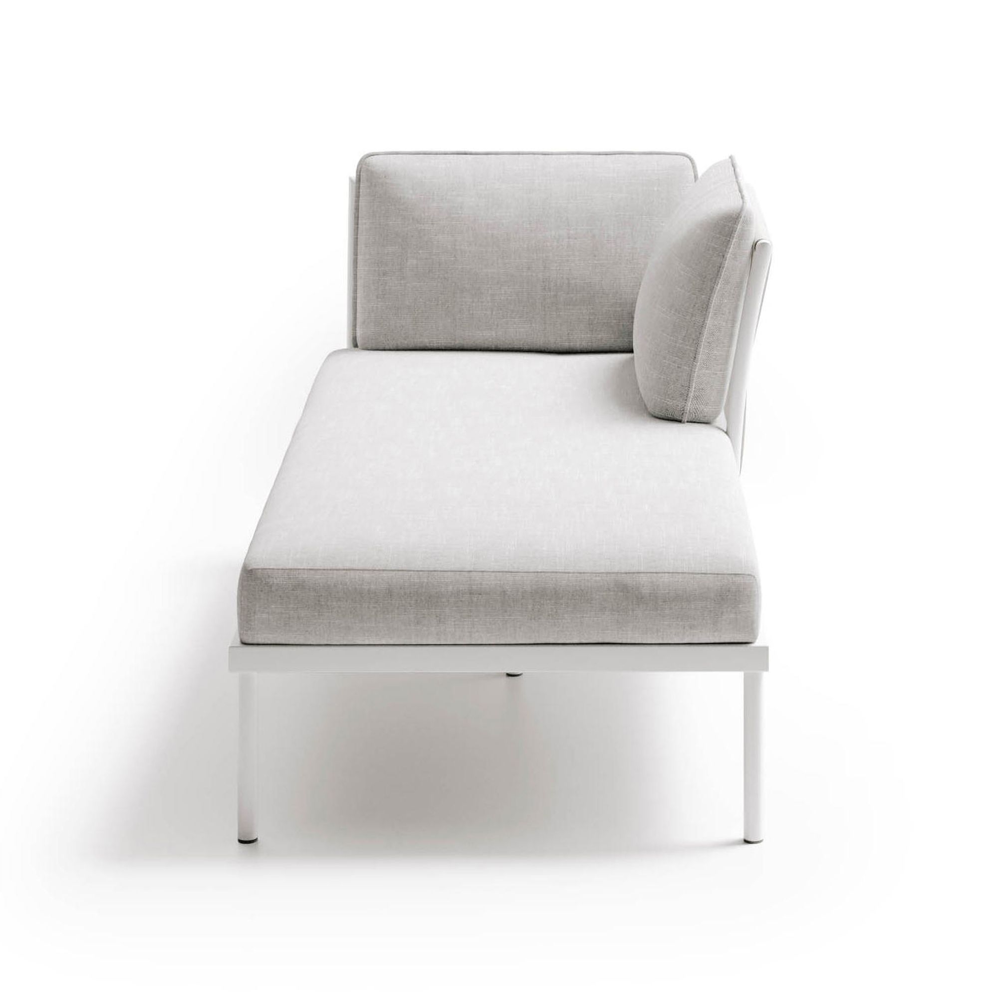 The Flash right outdoor daybed, crafted with an epoxy powder-coated aluminum structure for outdoor use and seat cushions upholstered in outdoor fabric, is available in a wide range of color combinations. The Flash right daybed is a choice of extreme elegance and comfort for those wishing to enrich their outdoor space with a touch of contemporary design. This chaise longue offers the perfect combination of material quality and aesthetic refinement, ideal for creating a pure relaxation corner in the garden, terrace, or beside the pool. Constructed with a solid epoxy powder-coated aluminum frame, the Flash right daybed effectively withstands the action of weather agents, ensuring durability and reduced maintenance needs. Characterized by a side panel in hand-woven rope, it adds a touch of craftsmanship that blends perfectly with the modernity of its lines. The seat and back cushions, covered in high-resistance outdoor fabric, ensure unparalleled comfort and are available in a wide range of colors and fabrics, allowing for the personalization of the daybed according to one's tastes and the style requirements of the outdoor environment to be emphasized. The Flash right daybed stands out for its high aesthetic profile and versatility of use, capable of adapting to both private contexts and public spaces. With its fluid lines and attention to detail, this daybed represents a distinctive and superior quality piece of furniture, created to offer moments of absolute well-being outdoors.