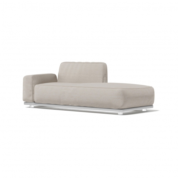 Laguna corner chaise longue made with an aluminum base painted with epoxy powders for outdoor use and a seat in expanded polyurethane covered in outdoor fabric. Available in a wide range of fabrics and colours, the Laguna corner chaise longue is a flawless fusion of elegance and comfort, excelling at enriching any outdoor area with its distinctive design and superior functionality. Inspired by the seductive city of Venice and its wonderful lagoon, the Laguna corner chaise longue brings with it a unique style and timeless charm, ideal for those who aspire to transform their outdoor spaces into serene and enchanting refuges. Its modularity allows for unparalleled customization, adapting perfectly to any spatial configuration, from the intimate garden to the vast terrace, creating an atmosphere of luxury and comfort. The Laguna collection, with its corner chaise longue, stands out for its innovative design and elegance, guaranteeing unparalleled comfort and exceptional durability against the elements. It is the perfect choice for those seeking to combine refined aesthetics with everyday practicality, ideal for creating an outdoor relaxation corner that reflects the luxury and enchantment of Venetian life. With the Laguna corner chaise longue, transform your outdoor space into a paradise of tranquility and style, where the excellence of Italian design combines with maximum functionality, to experience moments of pure relaxation in the open air. Designed by Atmosphera Creative Lab.