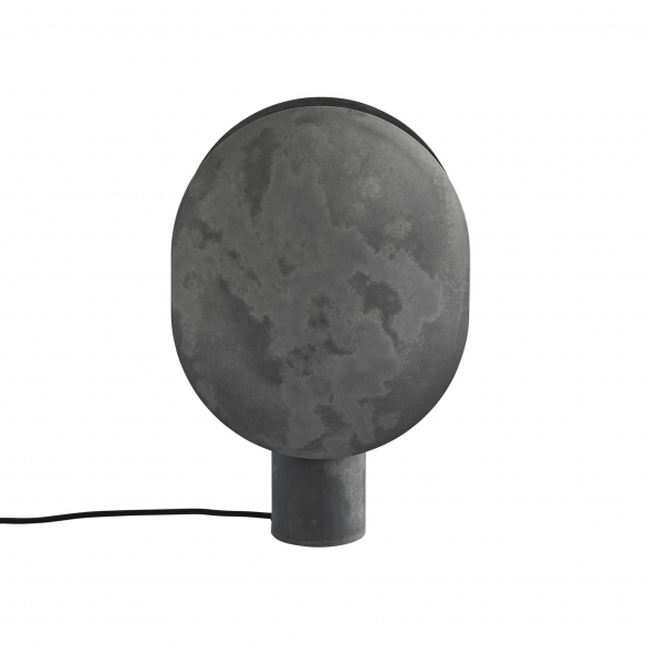 Clam table lamp in oxidized metal, plated and subsequently brushed by hand. Available in Brass, Oxidized and Burned Black, the Clam table lamp is made up of two metal plates that enclose and house the light source. When turned on, the light is reflected on the two diffusers and then indirectly diffused into the surrounding environment and create a suggestive atmosphere. It has a cylindrical base and a sculptural beauty to illuminate and decorate your spaces. Light source 1x4.5W - E14, not dimmable. Designed by Kristian Sofus Hansen & Tommy Hyldahl for 101 Copenhagen.