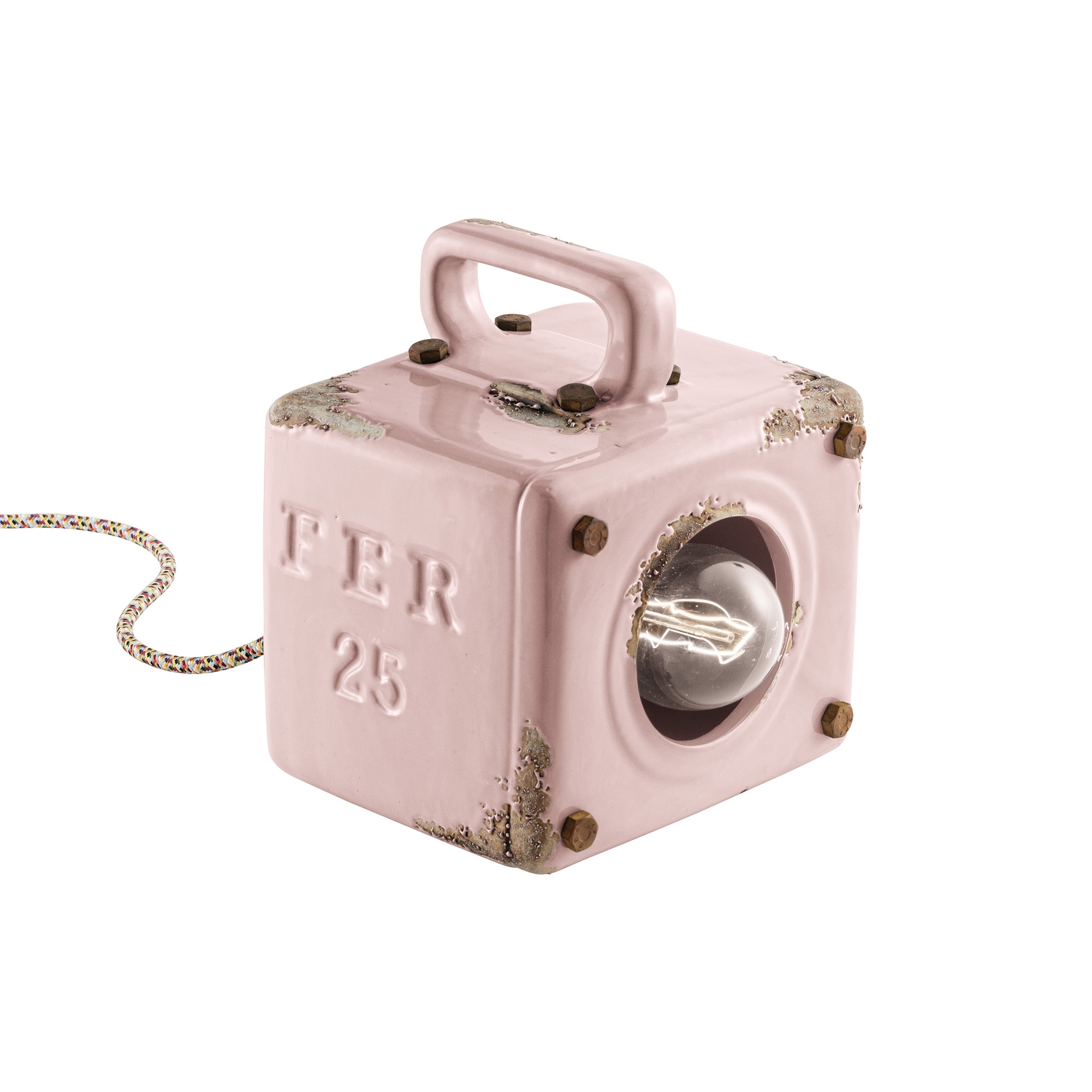 Have you ever thought about adding a touch of light-heartedness to your rooms, perhaps illuminating them with the right light? With the C1650 table lamp by Ferroluce, now you can! You will be pleasantly surprised by the unique design of this lamp, by the way in which the heat of the ceramic mixes with the coldness of the iron and creates a harmonious and visually homogeneous whole to furnish your interiors and not just illuminate them. The lamp resembles a cube, a briefcase with its graceful handle or practically... whatever you want because you will be the one to interpret it and bring it to life in a modern dining or living area. But that's not all, the beautiful enamel incorporates rougher details and creates a worn and textural effect, almost as if the lamp had been used and reused indefinitely. This model is available in different versions, come and discover them here, on Newpop.it!
