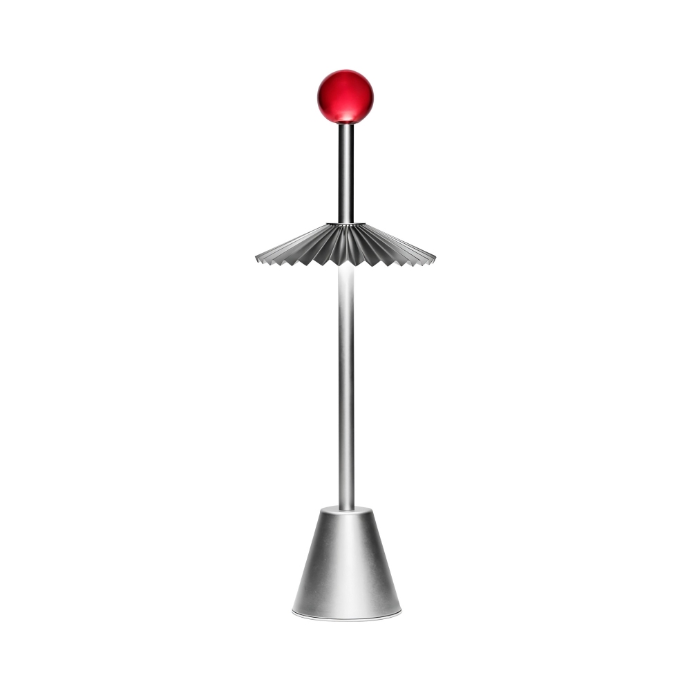 Etoile rechargeable table lamp made with painted aluminum structure and blown glass knob. Available in 3 color finishes, the Etoile table lamp is a lamp with a slim and light design, inspired by the figure of a ballerina. The lamp has a painted metal structure, available in different colours, which supports a translucent fabric tutu. The tutu hides an LED with an intimate and warm light, which creates an atmosphere of elegance and joy. The lamp is powered by batteries, therefore wireless and easily transferable. Designed by Daniela Puppa for Firmamento Milano.