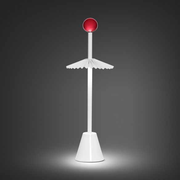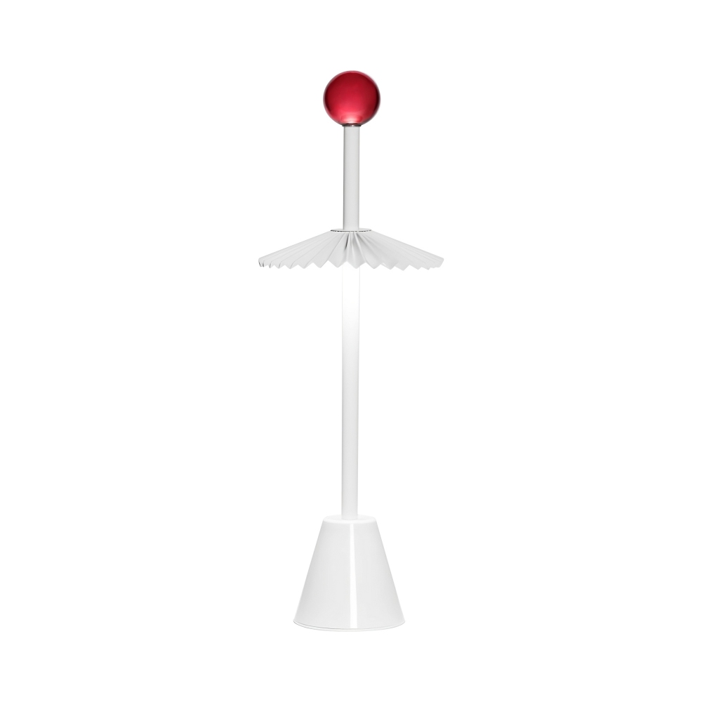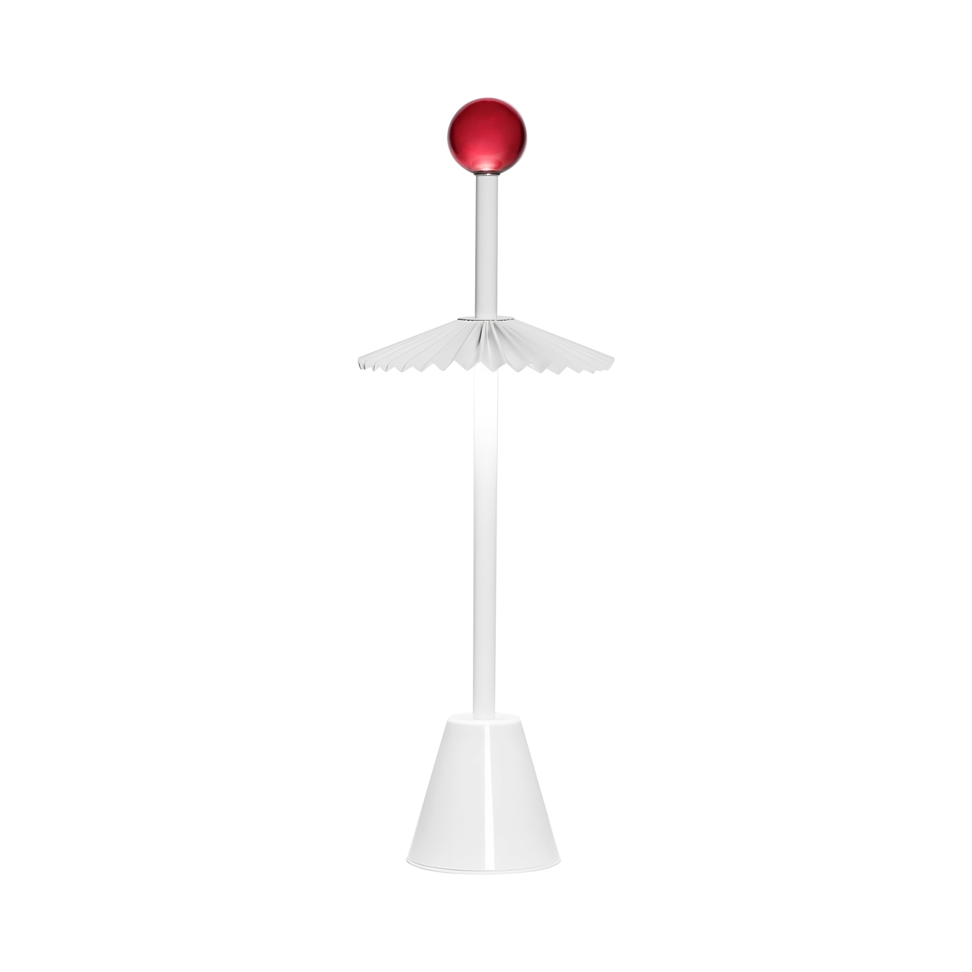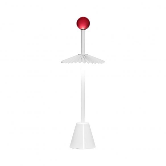 Etoile rechargeable table lamp made with painted aluminum structure and blown glass knob. Available in 3 color finishes, the Etoile table lamp is a lamp with a slim and light design, inspired by the figure of a ballerina. The lamp has a painted metal structure, available in different colours, which supports a translucent fabric tutu. The tutu hides an LED with an intimate and warm light, which creates an atmosphere of elegance and joy. The lamp is powered by batteries, therefore wireless and easily transferable. Designed by Daniela Puppa for Firmamento Milano.
