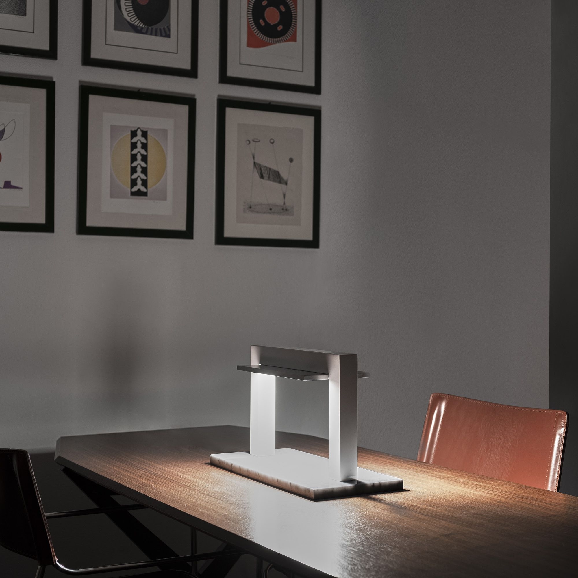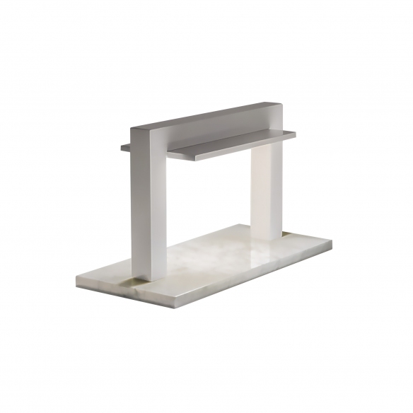 The Trilite table lamp by Firmamento Milano is a true micro architecture designed for your home environment. In an era in which architecture often presents itself as massive urban objects, Trilite is the exact opposite: a small table jewel that brings with it an aura of discreet elegance. Trilite's design is an ode to sobriety and eclecticism. This small table architecture is like a portal of light that delicately illuminates everything around it. Its marble base gives a sense of importance and stability, while the glossy red lacquered portal adds a touch of boldness and sophistication. The heart of Trilite is represented by a thin aluminum tile, which diffuses the light delicately and evenly. This table lamp is designed for those who appreciate the concept of "less is more". Its simplicity is fascinating and its visual impact is unique. For those who prefer a more neutral aesthetic, Trilite is also available in the white version. This option fits seamlessly into a wide range of décor styles, offering the same understated elegance in a more subtle tone.