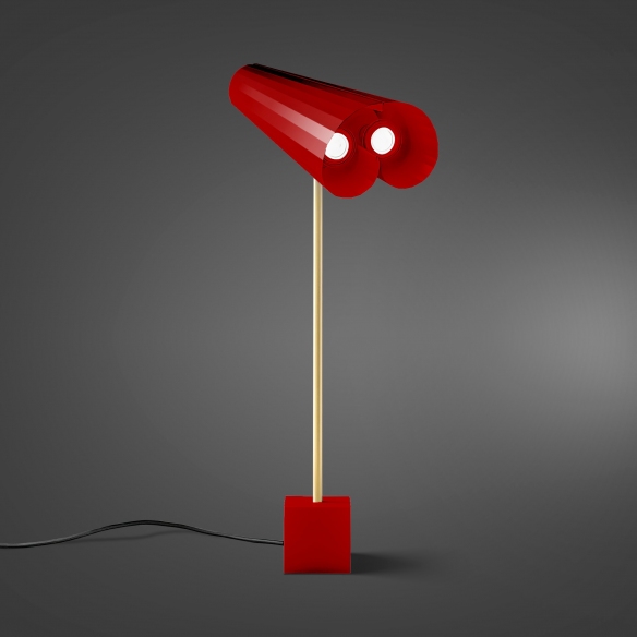Wall-y table lamp made of painted steel and satin brass. Available in 3 color finishes, the Wall-y table lamp stands out for its original and fun design. The lamp has two large eyes, which are like the lenses of binoculars, and which can be oriented in different directions. Wall-y is a lamp that smiles and makes you smile, thanks to its name which recalls the famous animated robot. Wall-y is a perfect lamp for the desk, bedside table or living room, where it creates a welcoming and playful atmosphere. Designed by Michele Reginaldi for Firmamento Milano.