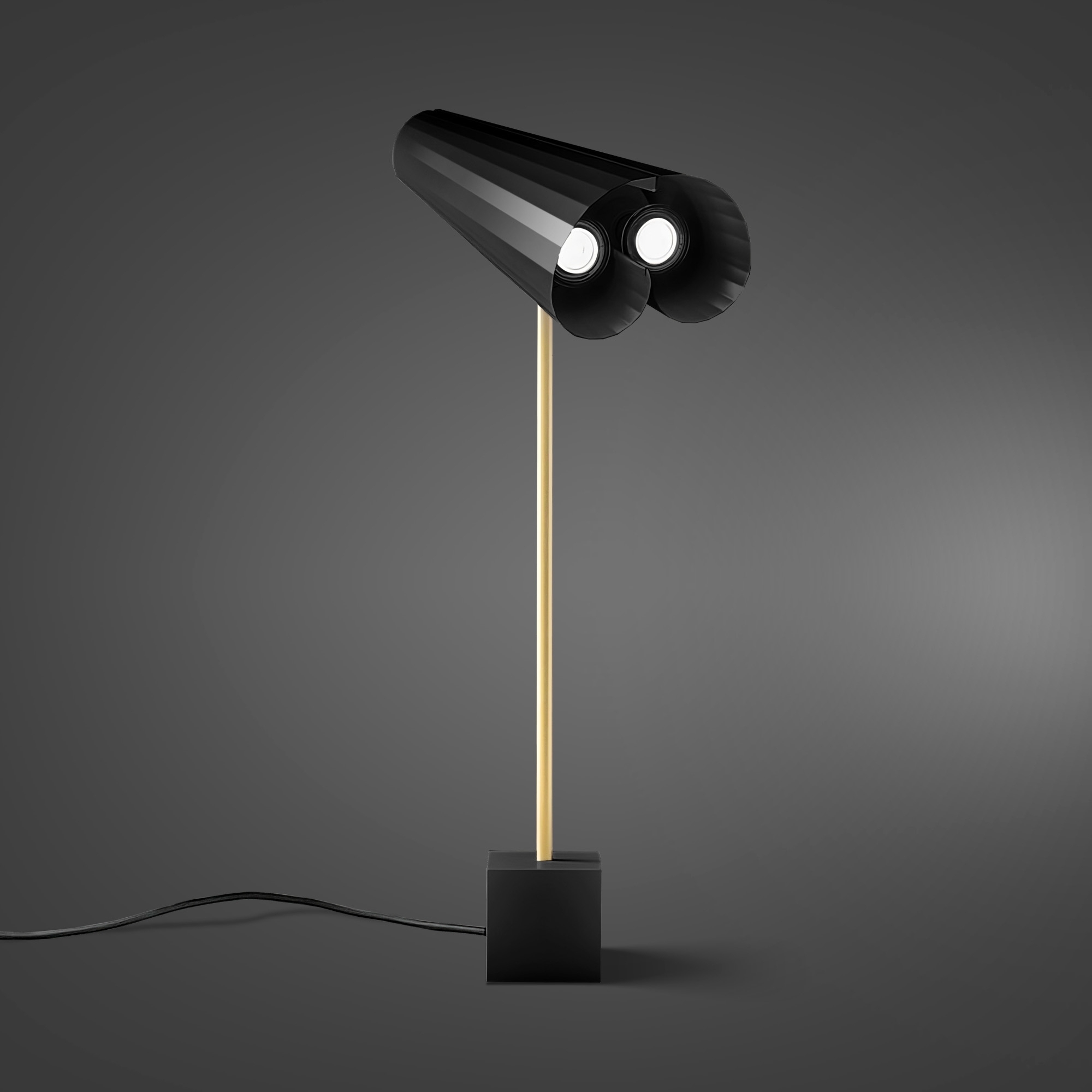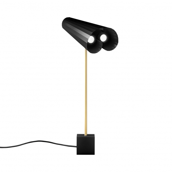 Wall-y table lamp made of painted steel and satin brass. Available in 3 color finishes, the Wall-y table lamp stands out for its original and fun design. The lamp has two large eyes, which are like the lenses of binoculars, and which can be oriented in different directions. Wall-y is a lamp that smiles and makes you smile, thanks to its name which recalls the famous animated robot. Wall-y is a perfect lamp for the desk, bedside table or living room, where it creates a welcoming and playful atmosphere. Designed by Michele Reginaldi for Firmamento Milano.
