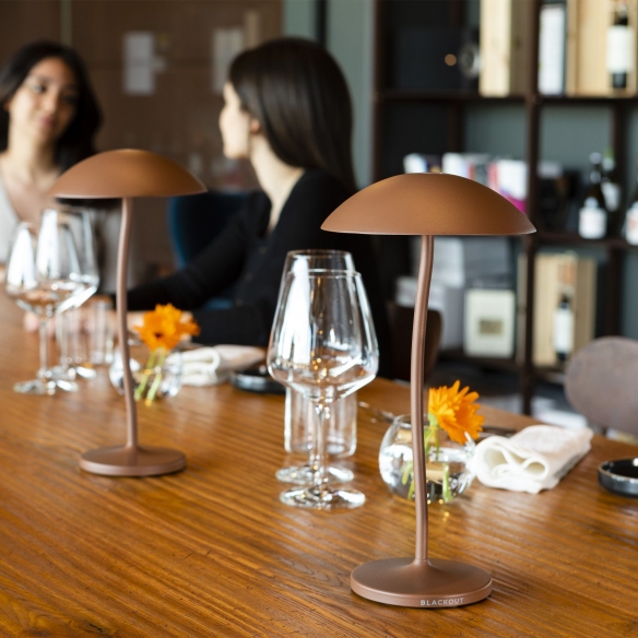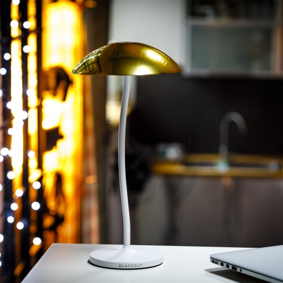 Stem table lamp made of aluminium, ABS and PC. Available in 3 colours, the Stem table lamp is a design jewel inspired by nature. With its harmonious shape and sinuous lines, it evokes the silhouette of a mushroom, transforming any environment with its warm and welcoming light. Perfect for an informal but elegant environment. Designed by Marcantonio for Blackout