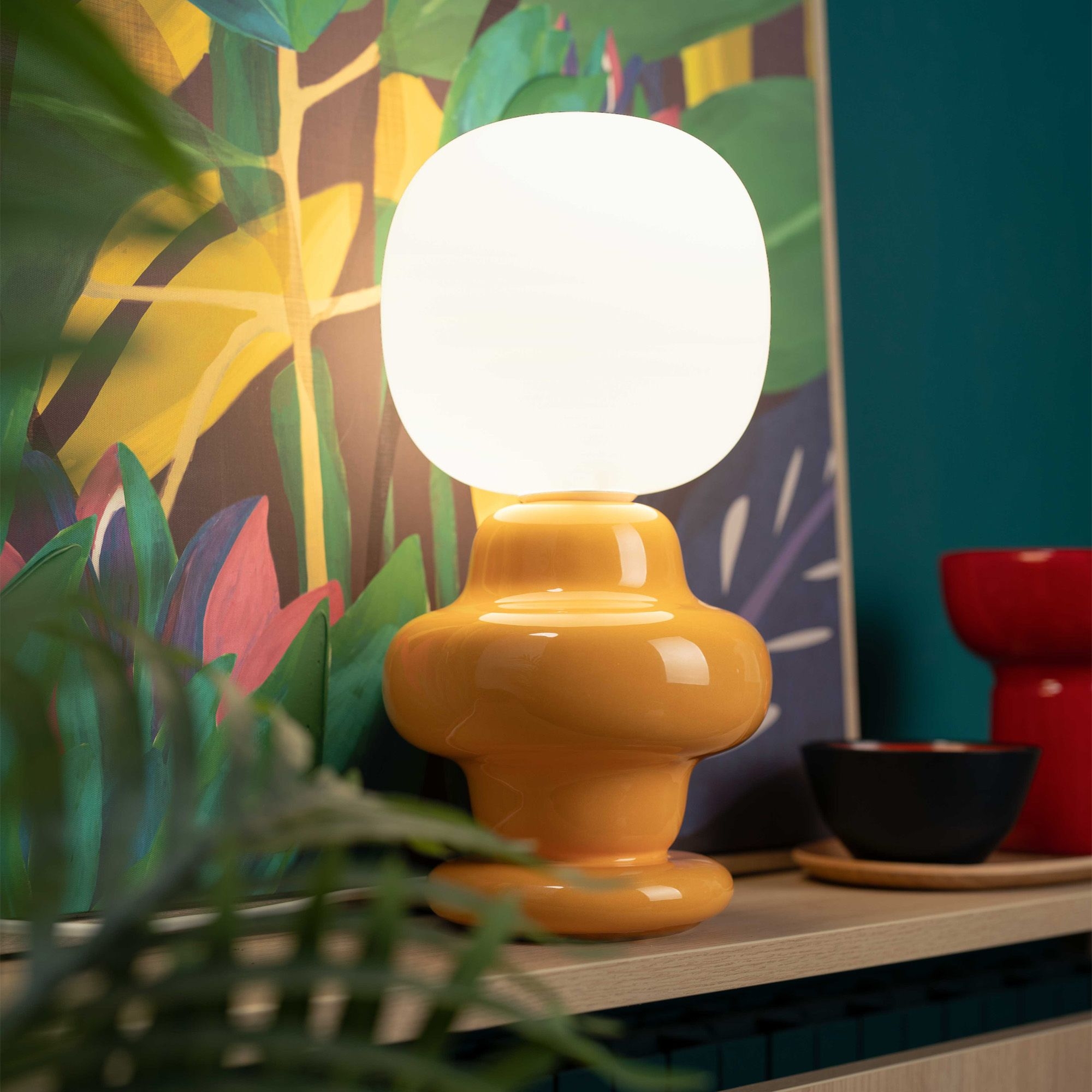 C2680 table lamp belonging to the Copacabana collection. Available in 5 color finishes, the C2680 table lamp is made with a ceramic base and satin opaline glass diffuser. Reflecting the style of the collection of the same name, this lamp offers an eye-catching lighting solution that adapts perfectly to different environments, such as dining tables, desks or bedside tables. With its minimalist structure and chrome details, the Copacabana C2680 table lamp enhances the beauty of the interior, providing a comfortable and well-distributed light. Made by Ferroluce.