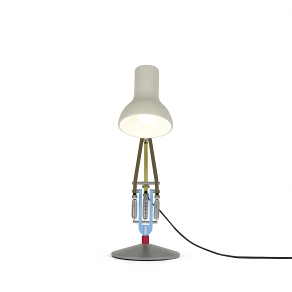 Materials: Matt paint finish, Aluminum shade and arms, Chromatic plated fittings, Cast iron base with aluminum cover, Anglepoise constant tension spring technology