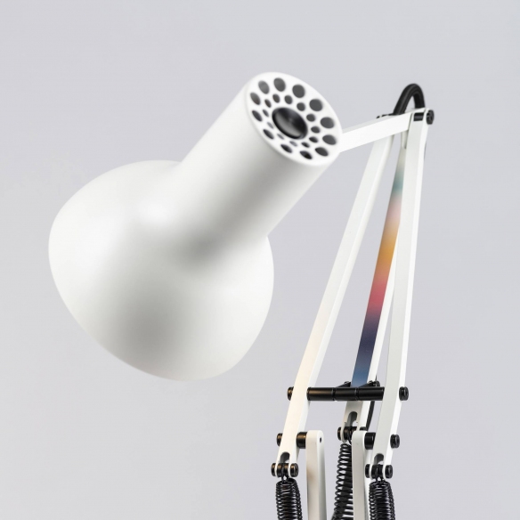 Materials: Matt paint finish, Aluminum shade and arms, Chromatic plated fittings, Cast iron base with aluminum cover, Anglepoise constant tension spring technology