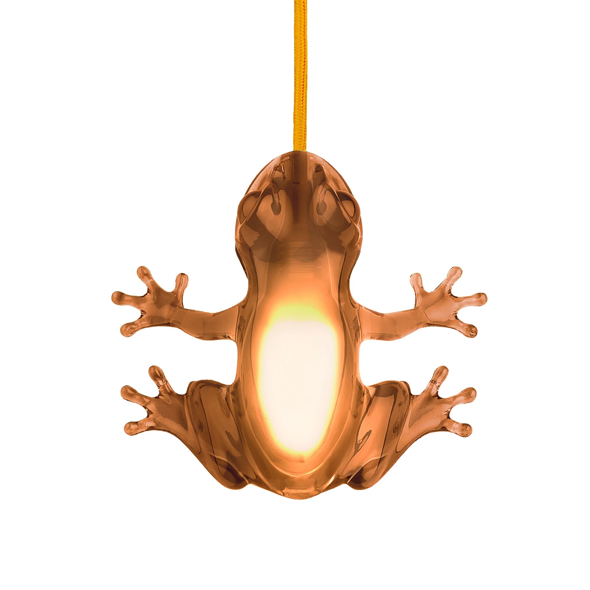 The Hungry Frog table lamp is a charming table/wall lamp shaped like a frog, crafted by Qeeboo entirely from high-quality PMMA, a material renowned for its visual appeal and resistance to scratches, and can be considered a lightweight alternative to glass. This exquisite table lamp is available in five stunning colors, with an iconic design reminiscent of a frog that has swallowed a light bulb, now illuminating its belly; its distinctive aesthetic makes it easily adaptable to any setting, from a living room side table to an entryway console, sure to capture the attention of your guests. The cord is fabric-coated and features an integrated switch that attaches to the bulb and comes out of the frog's mouth, allowing you to place it in any corner. This table lamp is not just a piece of furniture, but also an artistic expression of contemporary design, showing that practicality can go hand in hand with creativity. Designed by Marcantonio Malerba for Qeeboo.