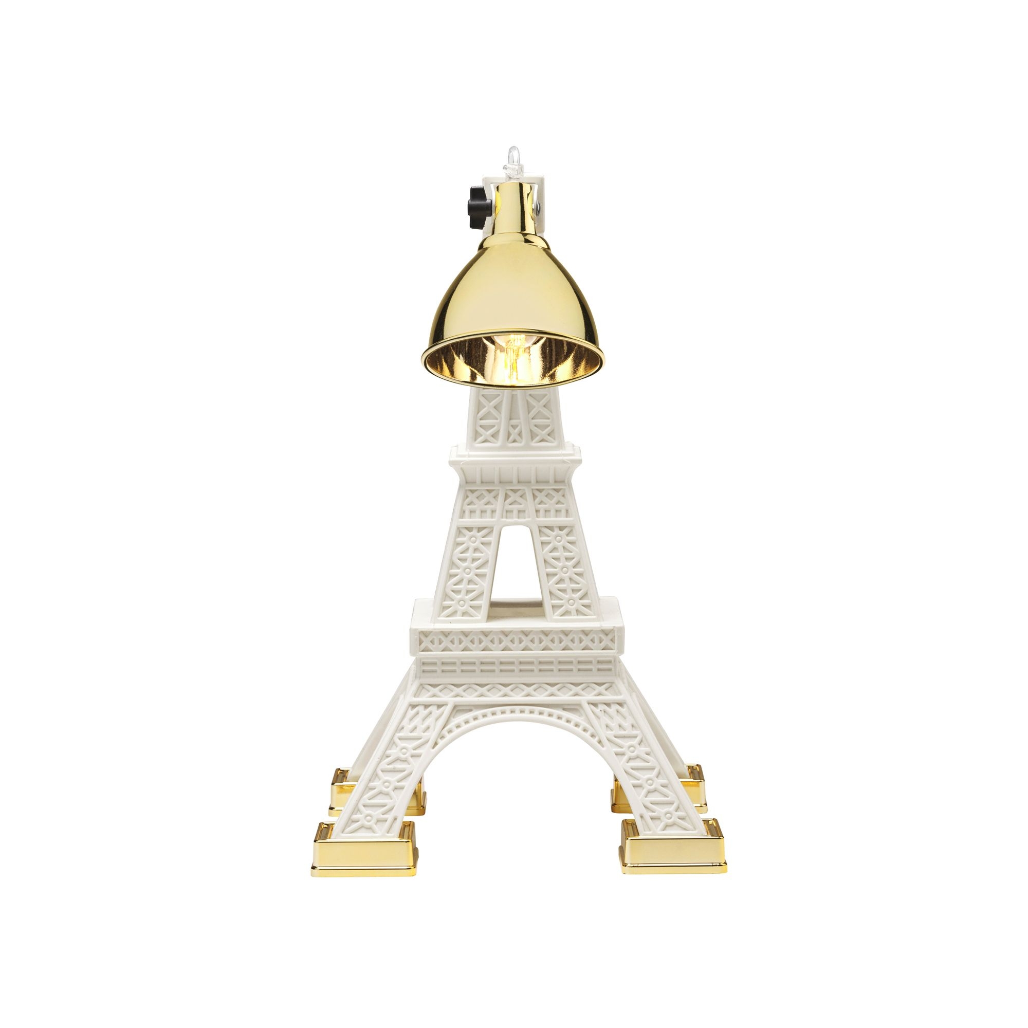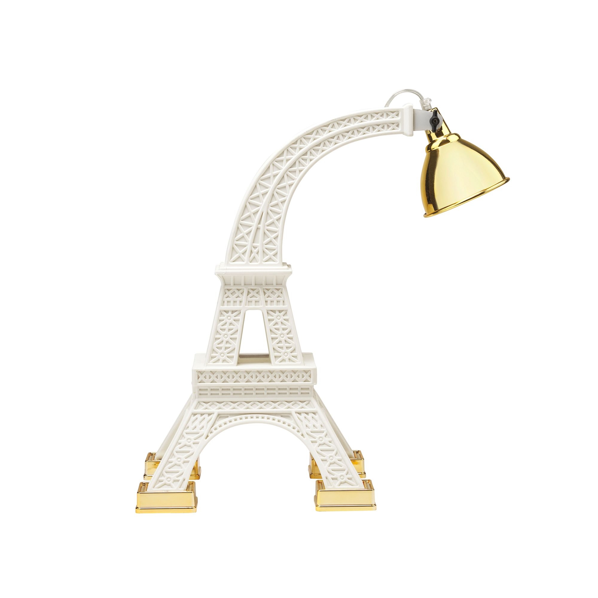 The Paris M table lamp is a lamp shaped like the Eiffel Tower, crafted by Qeeboo using metal and recyclable polyethylene, materials that ensure longevity, versatility, and durability. This magnificent table lamp, with its two color options and elegant design, can be paired with any setting and interior design style, from the minimalist-style living room of your home to a modernly designed bedroom. The Paris M lamp has the power to transform the atmosphere into a warm and romantic one, and it manages to capture the gaze of your guests. The Paris M lamp is equipped with integrated 6W LEDs and an adjustable dome-shaped brass diffuser, offering efficient and long-lasting illumination, demonstrating Qeeboo's ongoing commitment to the union between style and functionality. This symbol of elegance and innovation is an excellent choice that unites art, technology, and design into a perfect synthesis. Designed by Studio Job for Qeeboo.