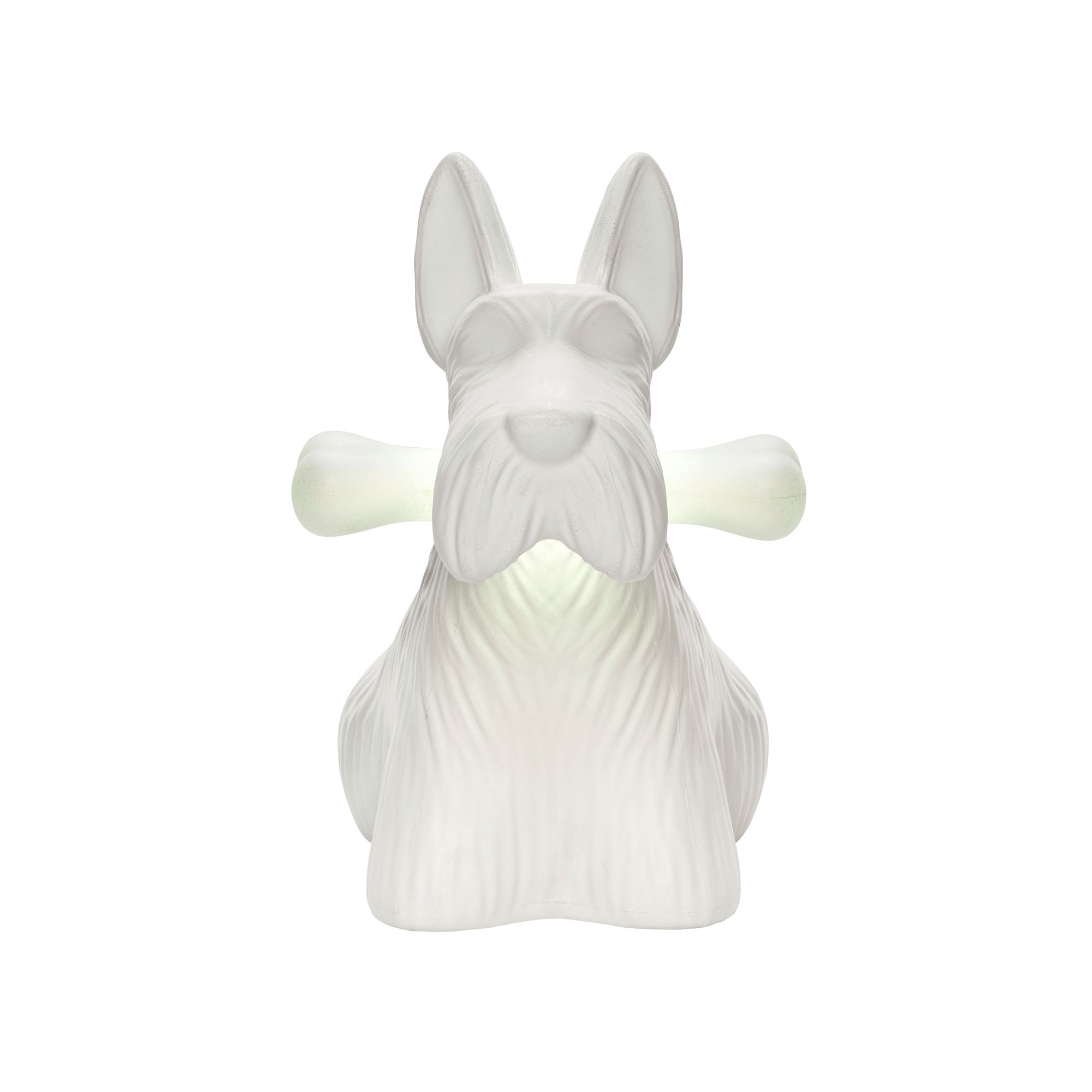 The Scottie table lamp from Qeeboo is a representation of a charming Scottish Terrier, crafted entirely from recyclable polyethylene, a high-quality material that ensures durability, longevity, and versatility. This table lamp is available in two beautiful collaborations, with a playful design reminiscent of a four-legged friend ready to bring a joyful atmosphere into your home, happily clutching a bone it never parts with. Indeed, the Scottie lamp harmonizes with any setting, from the living room to a bedroom, capable of capturing your guests' attention and becoming the focus of conversations. The lamp can be operated wirelessly using a remote control, and features integrated LEDs that provide quality lighting with significant energy savings. Unique and unconventional, this lighting product will be the perfect domestic ally to accompany you in everyday life with a smile. Designed by Stefano Giovannoni for Qeeboo.