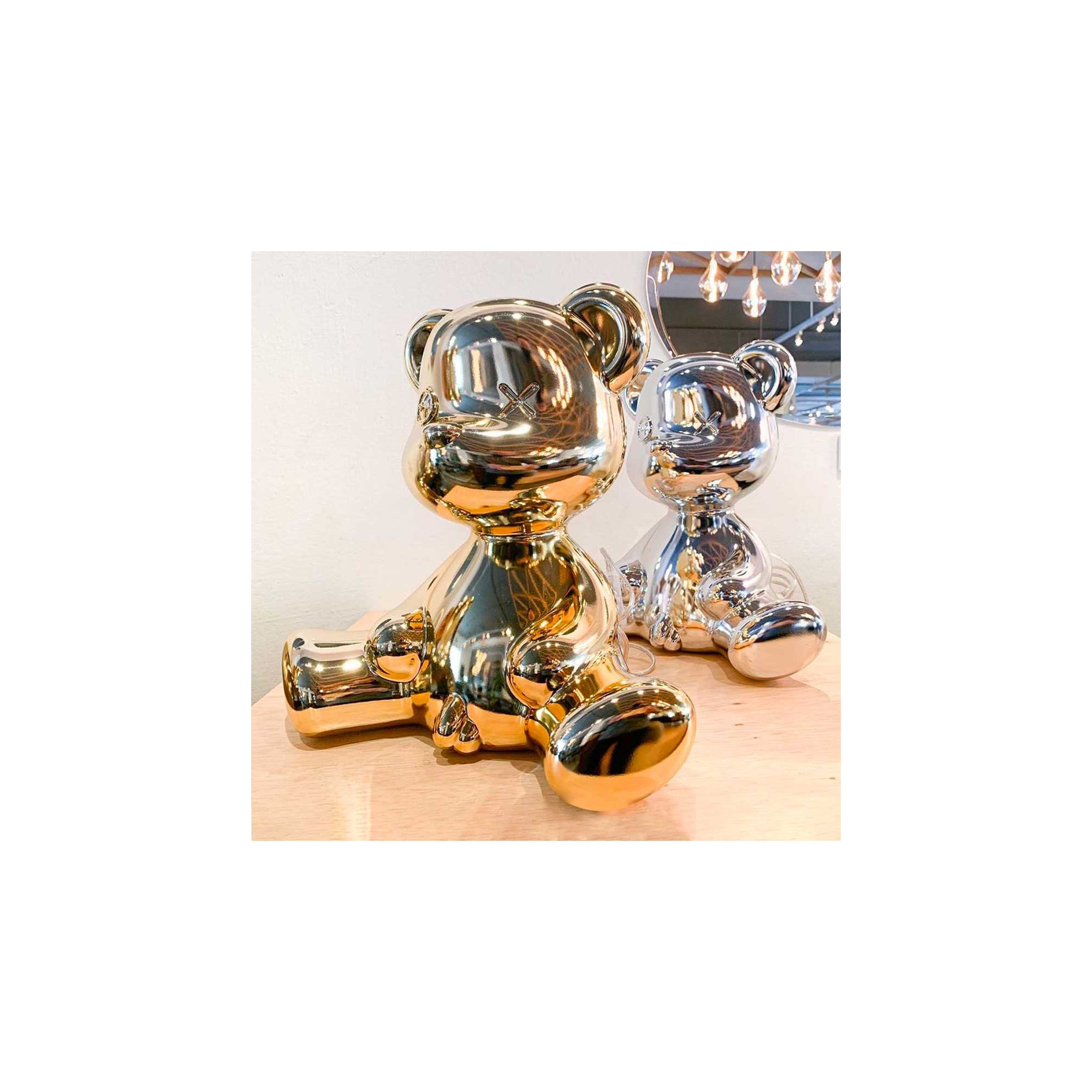The Teddy Boy lamp with cable, in metal finish, is a table lamp that cradles a small glowing sphere; made entirely of recyclable polyethylene by Qeeboo, this lamp promises durability and longevity, ideal for daily use. The Teddy Boy lamp features a whimsical design with human-like appearances; it is available in three different combinations, offering the highest level of customization to fit the user's needs in any space of the house, from the living room to a child's bedroom. Moreover, this charming lamp, with its metal finish, adds a touch of sophistication that enhances any room, capable of creating a soft and inviting light. This metal lamp with cable is ideal as a nightlight or for ambient lighting, but it also acts as a fantastic decorative element that embodies creativity and playfulness. Designed by Stefano Giovannoni for Qeeboo.