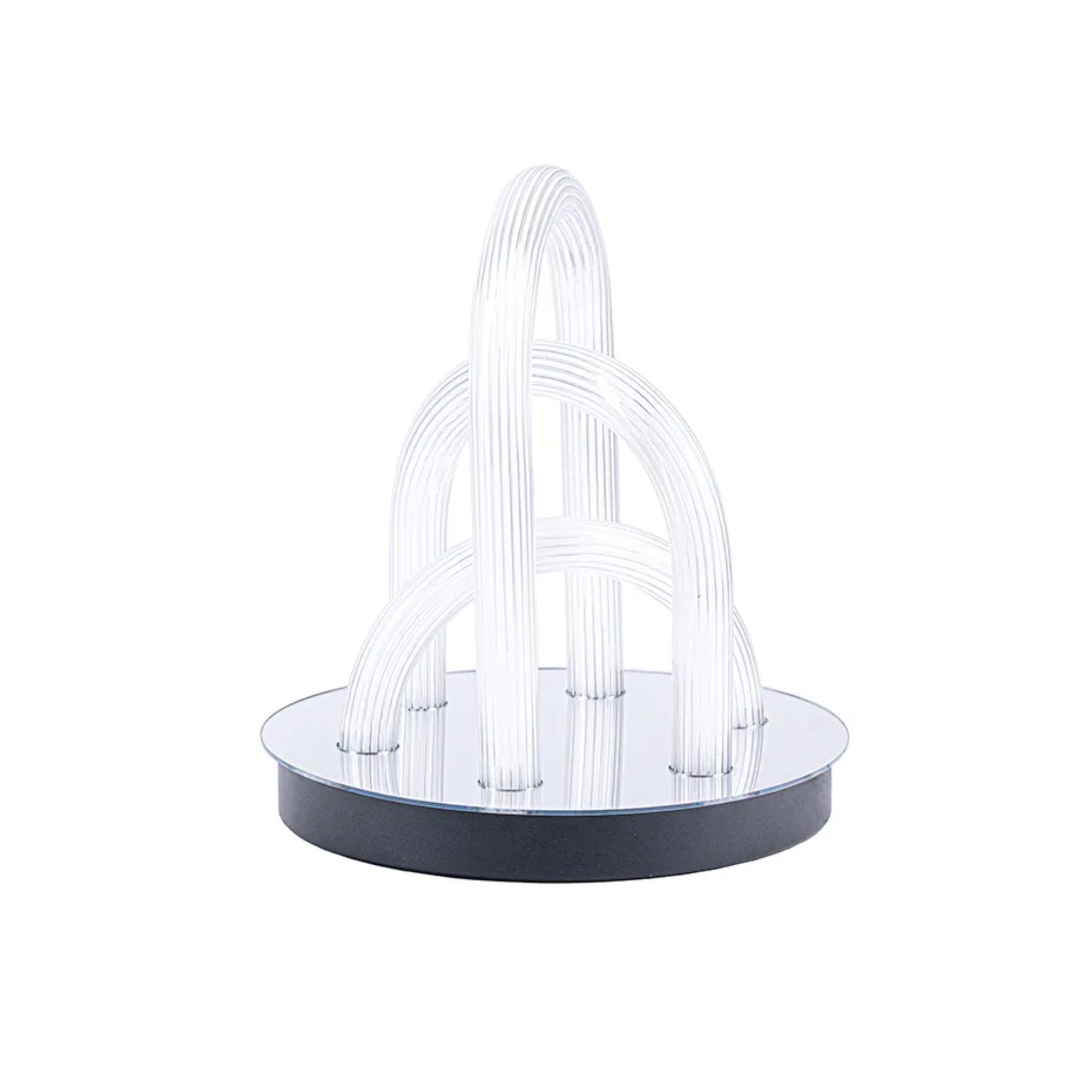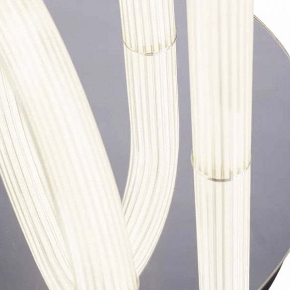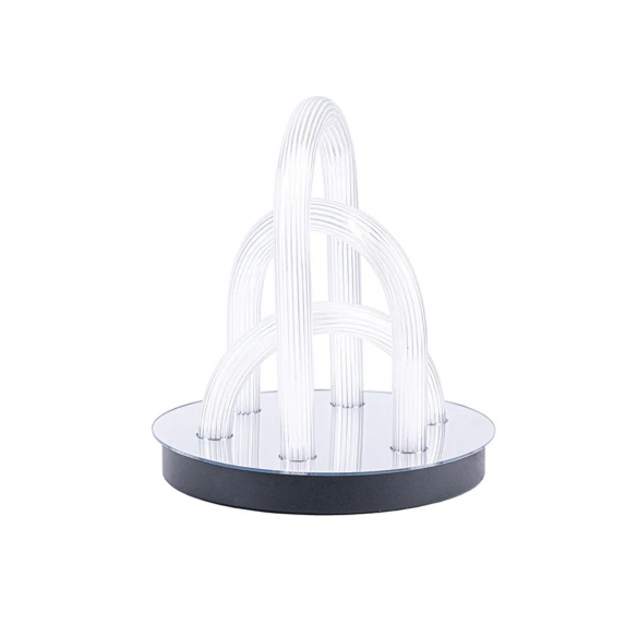 The Oort table lamp, crafted with a metal base and glass diffuser, is an illuminating gem of modern design, merging contemporary elegance with the cutting-edge technology of the latest generation LEDs. Fontana Arte's Oort lighting system consists of tubular elements made from borosilicate glass, a high-strength material that ensures longevity and flawless light distribution. Within these translucent tubes lies the lamp's radiant soul: flexible LED tubes that are easily replaceable and boast an astonishing 360-degree light emission, perfectly uniform for both indoor and outdoor environments. The charm of Oort originates from the internal striations of the glass, which enhance the brightness, making it warmer and more inviting. These features not only amplify the play of light and shadows but also simplify maintenance, as the smooth exterior surface eases cleaning without diminishing the lamp's beauty. Designed by Jacopo Roda for Fontana Arte, the Oort table lamp is indeed an exquisite contribution to any lighting design portfolio.