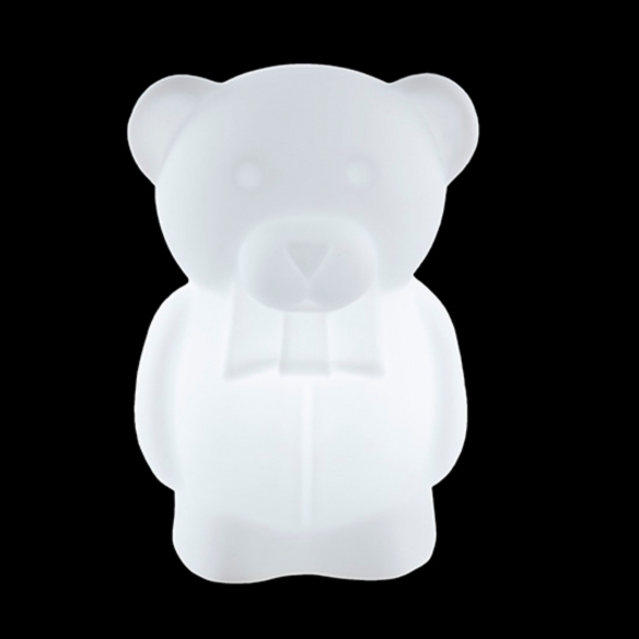 The Charlie table/floor lamp is a delightful bear sculpture created by Slide, made entirely from 100% recyclable polyethylene through the rotational molding technique, a material that ensures versatility, resistance, and durability. This charming illuminated teddy bear offers a vibrant alternative for lighting up spaces and enriching domestic environments: whether it's placed in your children's room, the bedroom, or the living room, Charlie becomes a focal point that is sure to entertain and capture attention. Additionally, the table lamp is available not just in the traditional white hue but also in yellow, light blue, red, green, blue, and pink variants, making it capable of fitting into various types of decor. The compact size of the Charlie lamp makes it perfect for use as a table lamp, ideal for adding a spot of light to desks, nightstands, or console tables. Easy to clean and resistant to impact, Charlie requires no special maintenance and ensures uniform and cozy lighting.