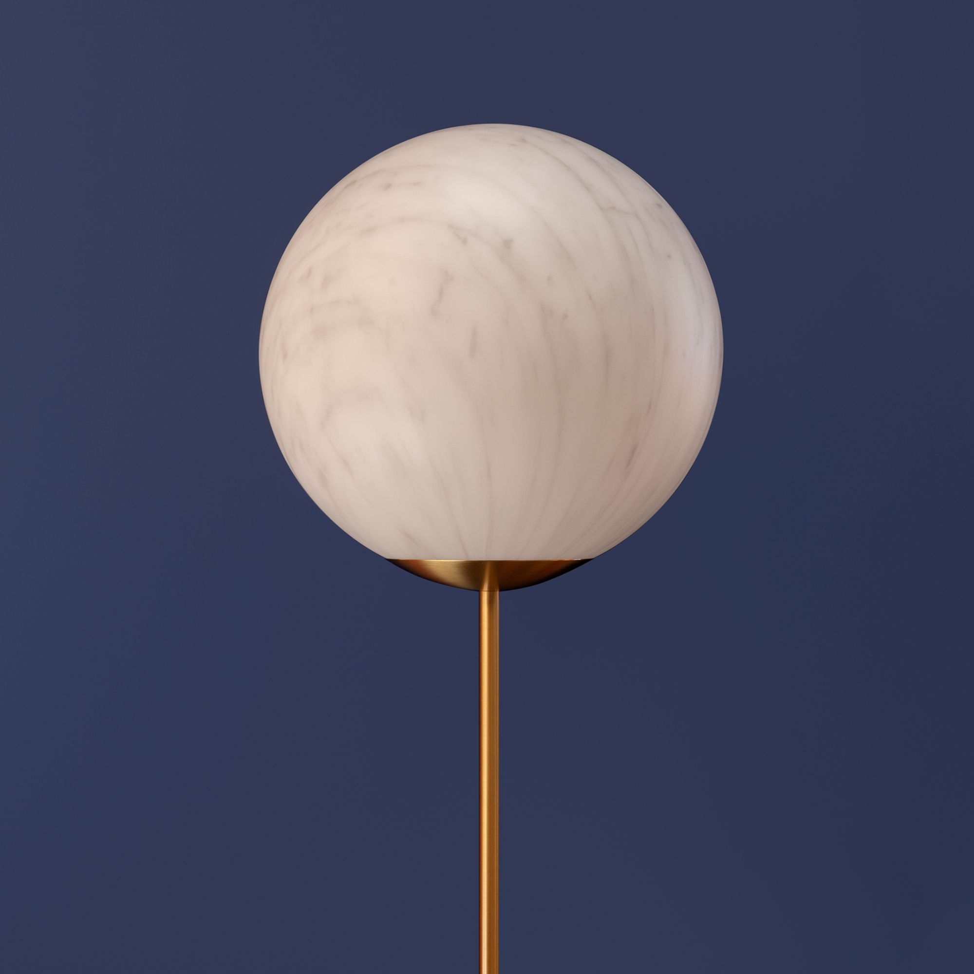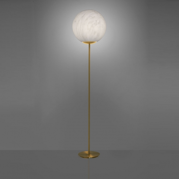 The Mineral Stand floor lamp, with a height of 175 cm, is the perfect marriage of elegance and functionality, crafted by Slide in polyethylene with a brass stem, materials that promise versatility, durability, and longevity. This splendid lamp features a sophisticated and precious design, expanding within the space and becoming the centerpiece of any setting, modern or traditional. Whether placed in a living room, a professional study, or in commercial spaces such as chic bars or pubs, the Mineral Stand has the power to transform any environment with its luxurious and decorative presence. Inspired by the veining of Carrara marble, the Mineral Stand floor lamp showcases a classic style while fully embracing the contemporaneity of polyethylene. With its soft and gentle light, the Mineral Stand is ideal for welcoming your guests into an environment that is both elegant and warmly inviting. Timeless, essential, and still precious when turned off, the Mineral Stand lamp meets the needs of all spaces.