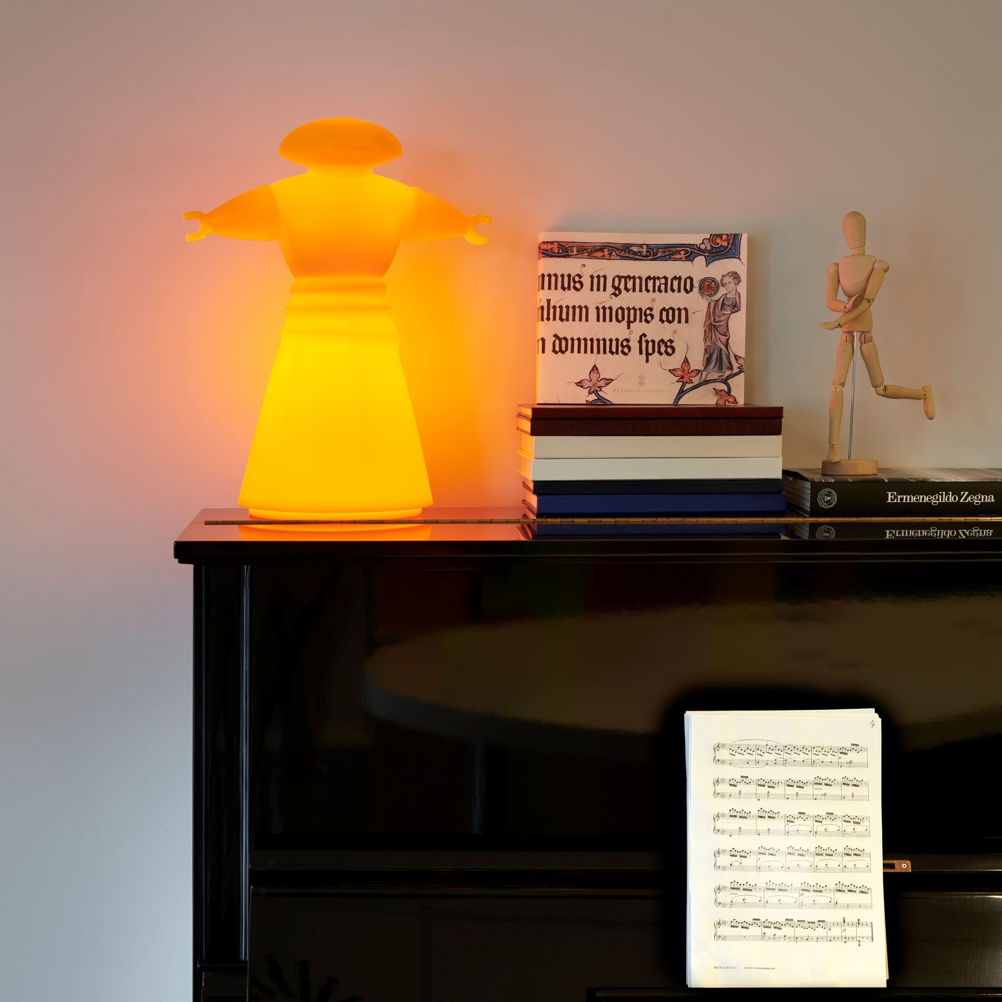 The Mr Bot table lamp is a delightful and charming piece of art made by Slide from 100% recyclable polyethylene, a material appreciated for its durability, versatility, and longevity. This table lamp boasts a lively and fun style, available in various bright colors, and it perfectly complements different settings: whether placed in a living room, bedroom, or a professional study, Mr Bot will brighten any space, capturing the attention of guests. Practicality is another strong point of this lamp. Its lightness is also a strength: easy to move, clean, and capable of transforming the atmosphere into cozy and sophisticated. Mr Bot demonstrates that high-level design can also be functional and accessible.