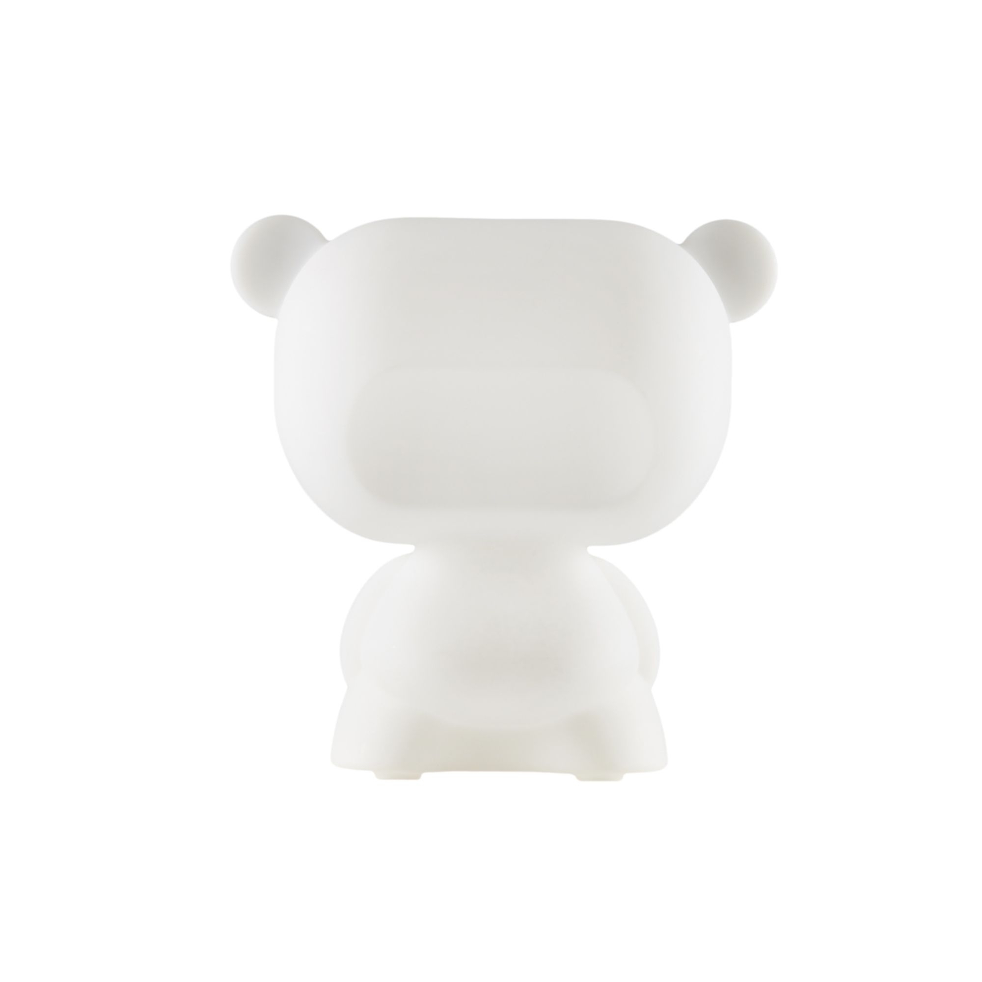 The Pure table lamp, made of polyethylene, encompasses an essential and minimalist representation of the classic rag toy. The Pure lamp diffuses a pleasant delicate light in discreet nuances, allowing the lamp to easily integrate into any setting without ever being intrusive. Its charming and playful design will delight both adults and children alike. Designed by Lab81 for Slide.