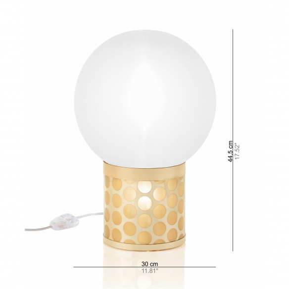 The Atmosfera table lamp, in its medium version, is a exquisite fusion of art and design, made from methacrylate and Goldflex® or Pewterflex®, patented Slamp materials that ensure elegance, durability, and brilliance. With a retro glam look, the Atmosfera table lamp has a polka dot base created by overlapping two layers of Slamp's sustainable material: the lower one hand-crafted and the upper one metallized. This gives the lamp a unique and unattainable style. A "fringe" skirt in the Charleston style, on the other hand, dresses the base of the "Fringe" version. This lampshade is equipped with dual independent activation of the base and the diffuser, transforming it from a decorative object into a courtesy light in the darker hours. Moreover, this lamp is easily matchable with any setting and style of furnishing: it fits perfectly in both home environments and more formal ones, such as offices or exhibition areas, adding a touch of class and modernity. The design plays with lights and shadows, projecting environmental reflections and patterns that enrich the room's atmosphere with warm and diffused luminosity. Designed by Lorenza Bozzoli for Slamp.