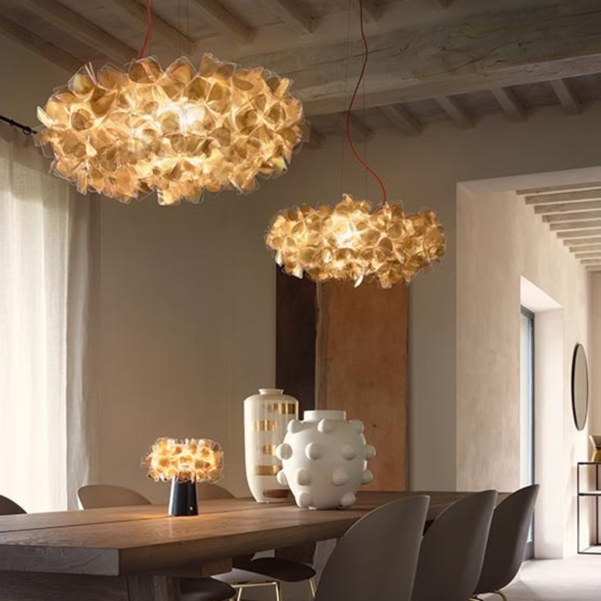 The Clizia Battery rechargeable table lamp is a true epitome of beauty, functionality, and innovation, made by Slamp in Cristalflex®, with a steel and smoked base, materials that are elegant, durable, and resistant. This wonderful table lamp draws inspiration from the lush forms of nature, and thanks to its fresh design and various color options, it easily adapts to any type of setting: from the living room to the bedroom, from the rooms of a luxurious hotel to a chic restaurant, adding a touch of uniqueness and elegance to the space. Moreover, all the versions of the Clizia family are equipped with a magnetic attachment, an innovative system that simplifies the installation and cleaning of the petals: the décor detaches from the light source with a simple click! Delicate in appearance yet unbreakable in materials, the Clizia Battery does more than just illuminate—it enlivens and decorates spaces. Designed by Adriano Rachele for Slamp.
