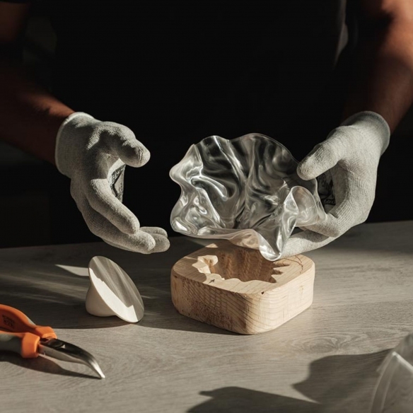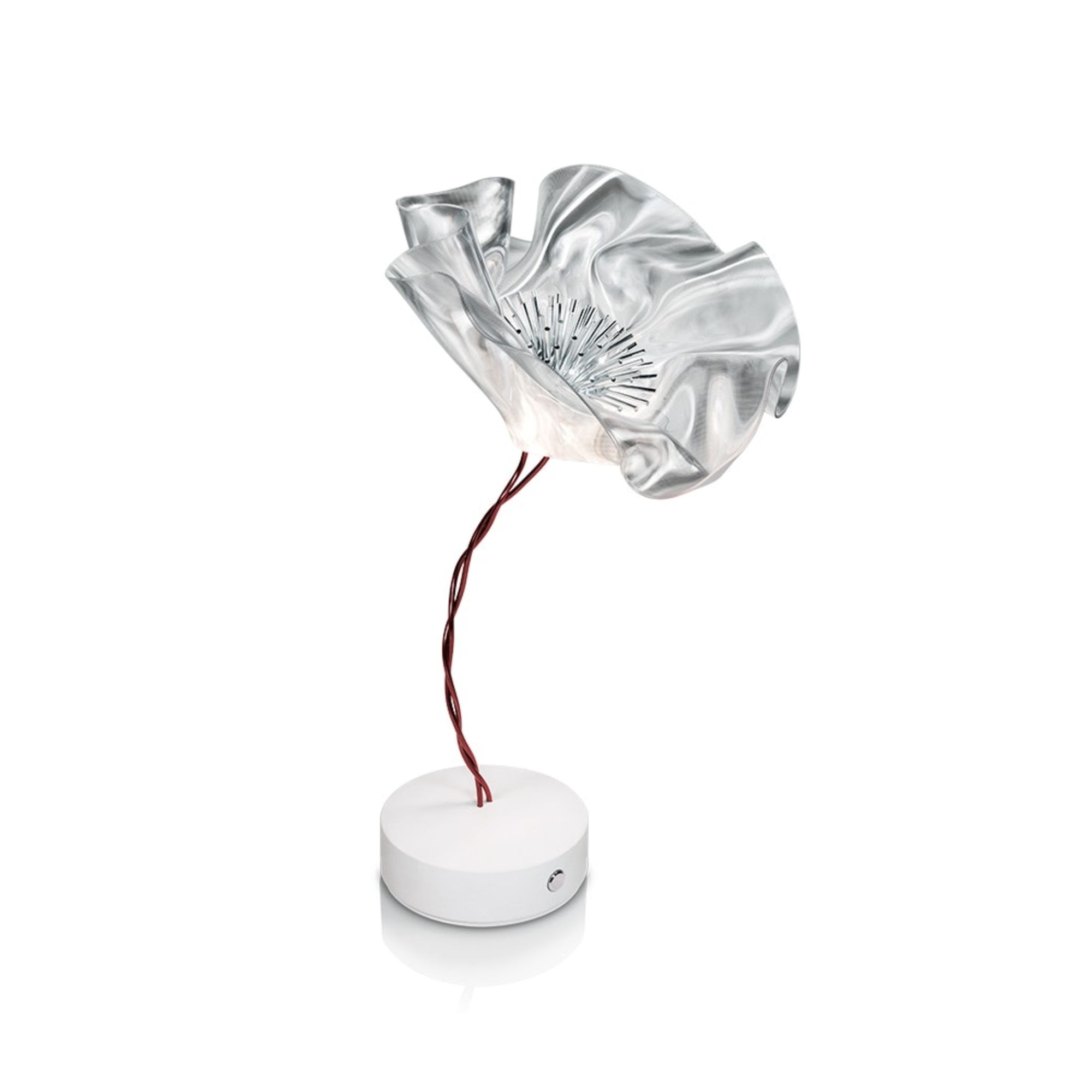 The Lafleur Battery rechargeable table lamp is a work of art boasting 60 hours of battery life, made by Slamp through heating Lentiflex® at a controlled temperature and hand-shaping it to bloom into a floral corolla. Available in Prisma and Velvet colors, Lafleur seamlessly adapts to any setting: be it for events, restaurants, or simply situated in a lounge or bedroom, this table lamp infuses light and nature into any space. Moreover, Lafleur is equipped with a touch dimmer and its base features an elegant matte finish in either white or black and is magnetic. Accompanying the lamp is a metal disc that can be placed under a tablecloth to transform Lafleur into a poetic, glowing centrepiece, offering perfect stability. Lighting up your space with Lafleur Battery means opting for a style that stands out with distinction, all the while maintaining comfort and elegance. Designed by Marc Sadler for Slamp.