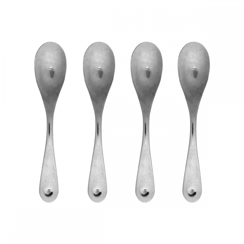 Set of 4 stainless steel teaspoons from the Point collection. The teaspoons are perfect for setting an elegant and classy table and for serving delicious desserts or to accompany coffee. Made by Bodanova.