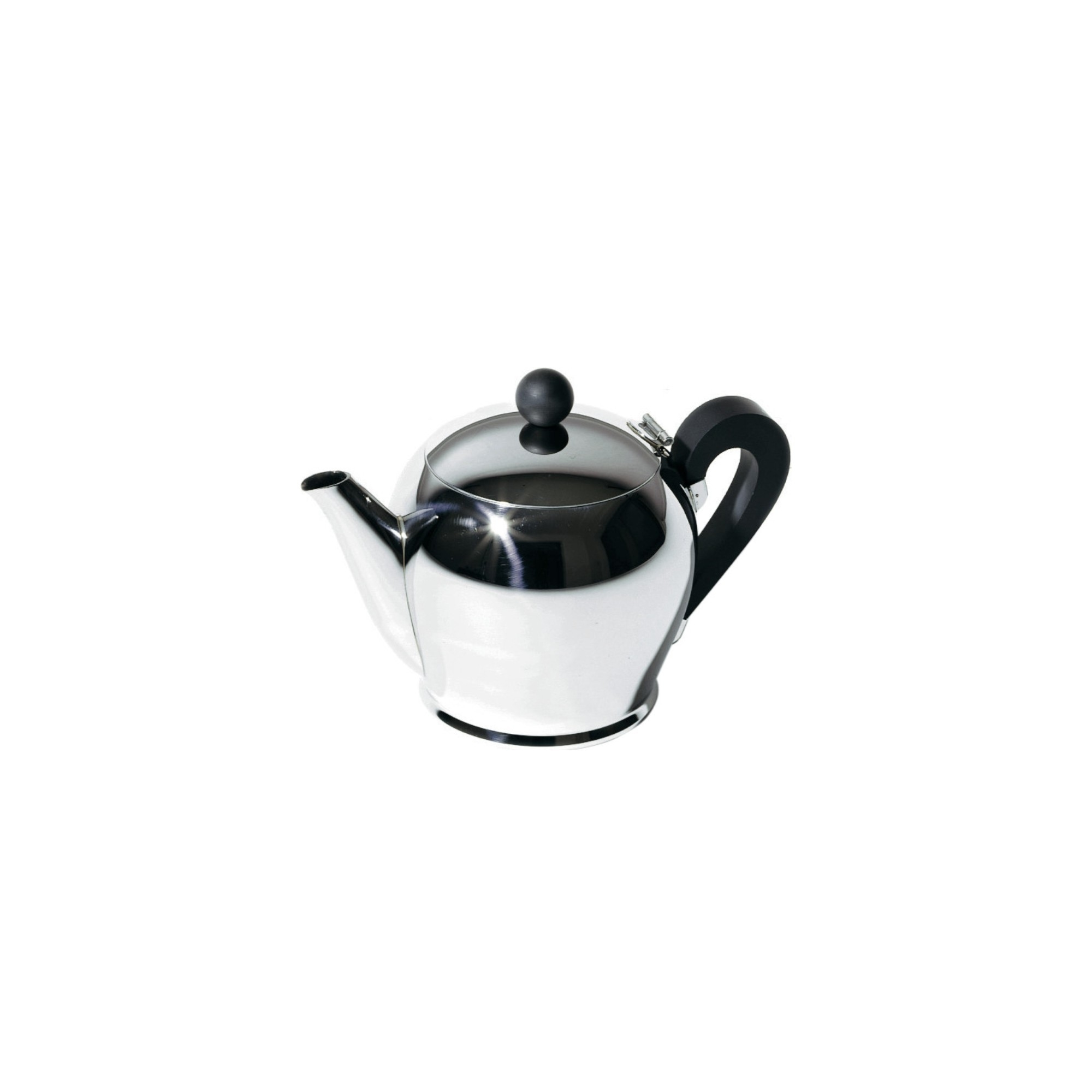 Teapot Bombè made of 18/10 stainless steel mirror polished with handles in bakelite. It is suitable for every type of table service thanks to its design. Designed by Carlo Alessi.