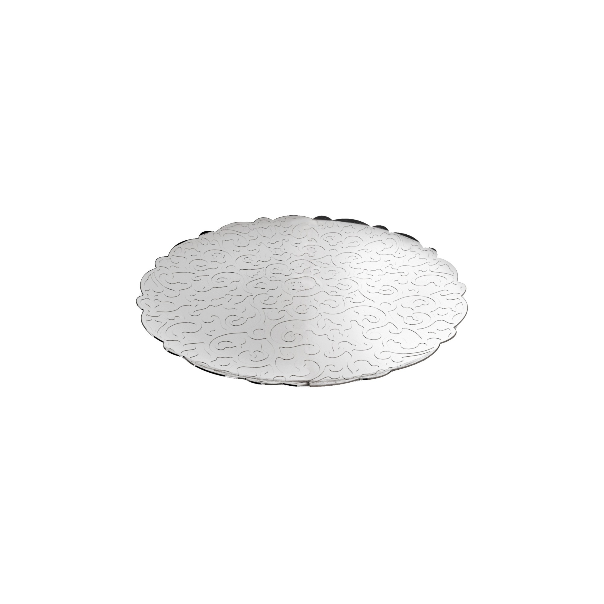 Dressed try made of 18/10 stainless steel. Characterized by a splendid relief decoration in the edge, this try is perfect for making any meal special, with fresh and clean design that makes each set unforgettable and evocative. Designed by Marcel Wanders for Alessi.