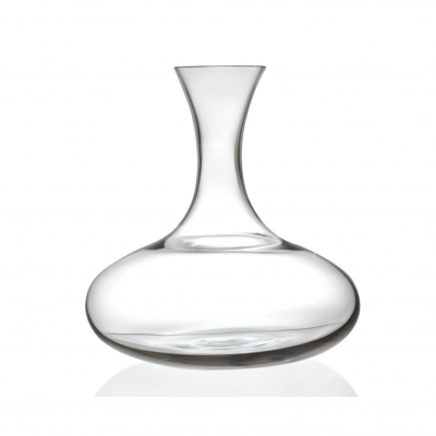 Mami caraffe made of crystalline glass. Linear and sinuous, Mami carafe has a fresh and clean design, characteristics that make sit suitable for every occasion. With a capacity of 1 litres, this carafe is perfect fr sharing drinks with friends or parents. The large neck (12 cm) allows the easy dosage of drinks. Designed by Stefano Giovannoni for Alessi.