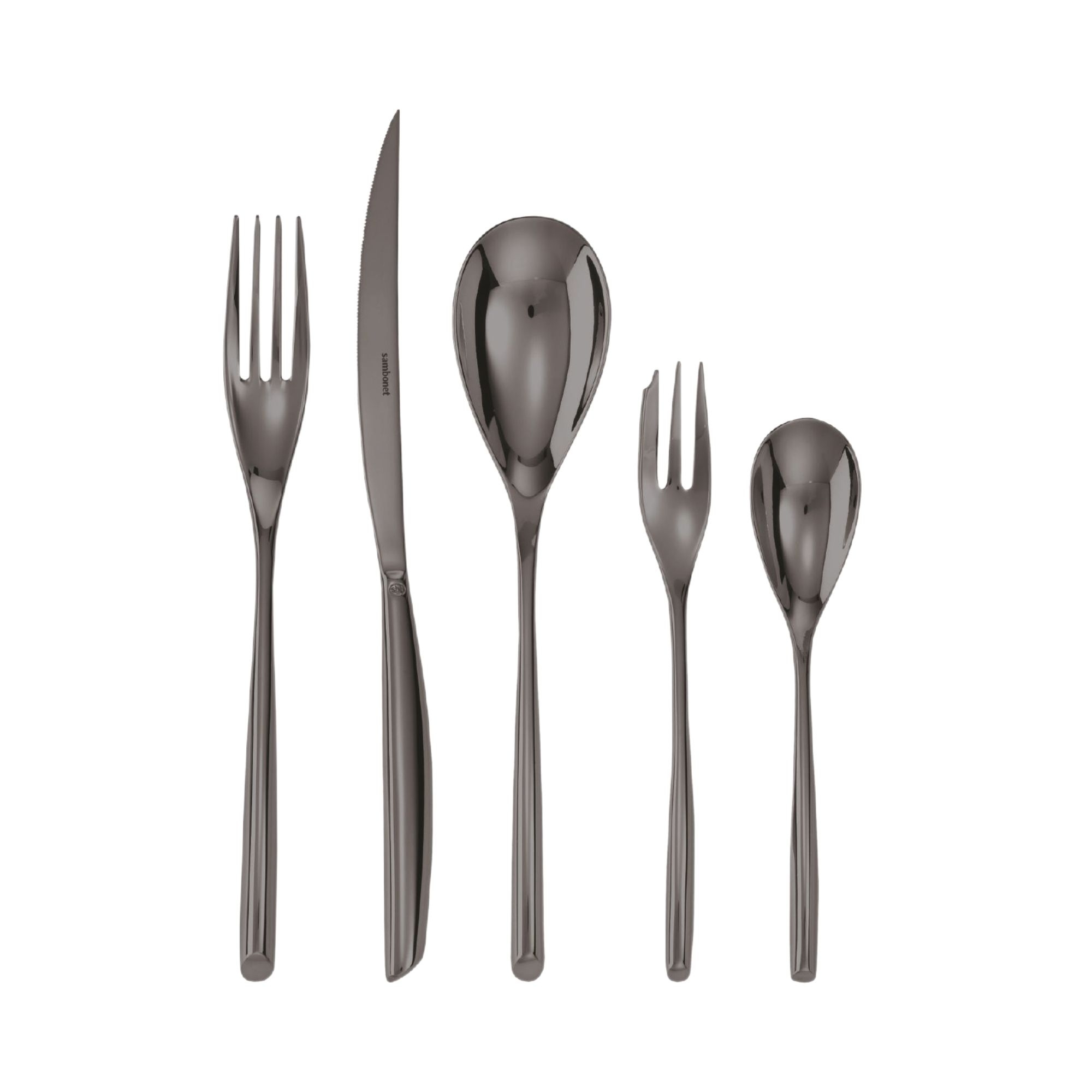 Available in steel, copper, champagne, Bamboo cutleries combine perfectly elegance, style, and functionality. The main characteristic is the oval section, which reminds on the 40s style. Designed and built by Sambonet.
