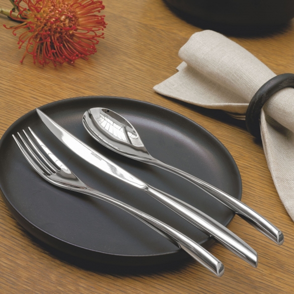 Available in steel, copper, gold, Bamboo cutleries combine perfectly elegance, style, and functionality. The main characteristic is the oval section, which reminds on the 40s style. Designed and built by Sambonet.