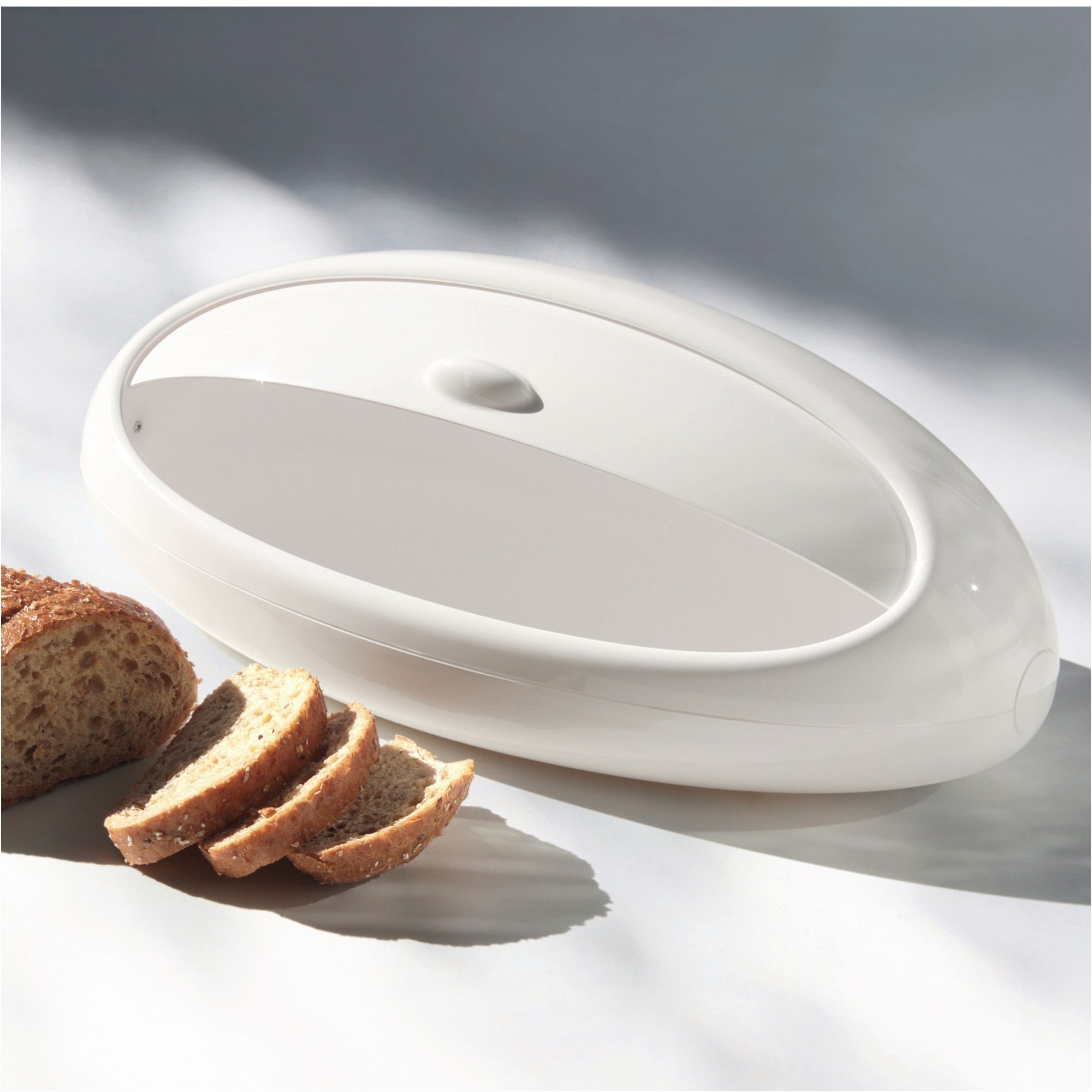 Gnam bread bin made of thermoplastic resin. Available in black and white, Gnam is characterized by a sharp shape jumped by the extraordinary brilliance of the material used, both in the transparent and in the opaque version. Performing on every occasion, Gnam is the ideal accessory to sweeten the moments at the table! Designed by Stefano Giovannoni and Elisa Gargan for Alessi.
