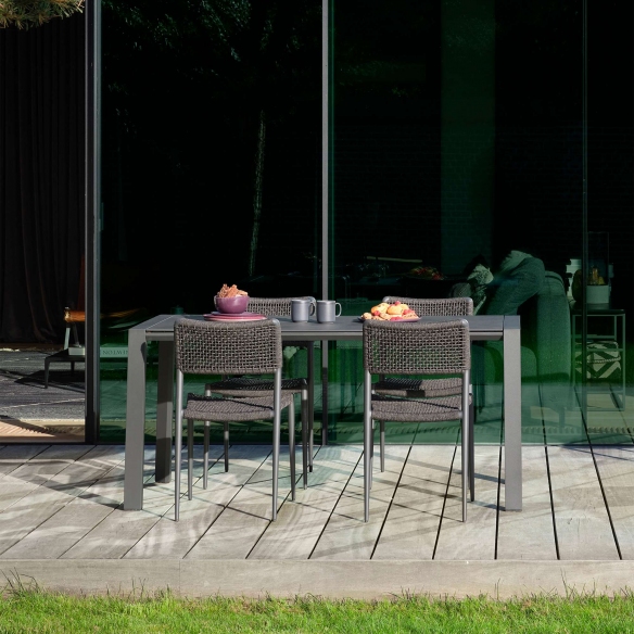 The Selecta Dining Table, measuring 160x80 cm with a height of 75 cm, is a perfect example of the union between functionality, style, and beauty, crafted by Diphano using high-quality aluminum that ensures strength and resistance to weather conditions such as rain, sun, and humidity. This exquisite outdoor dining table is available in two gorgeous color variations, making it perfect for any type of decor or space: whether it's a minimalist-style terrace or a modern garden with a swimming pool, the Selecta dining table enriches every kind of space, transforming it into a true oasis of well-being and elegance. The size of 160x80 provides seating for many people, making it ideal for family dinners or parties with friends. Moreover, the top of the Selecta dining table can be in white or black ceramic, a perfect material for outdoor use due to its resistance to heat, oil, or acidic substances; its scratch-resistant nature makes it ideal for outdoor dining. The ceramic adds a touch of unique and incomparable luxury and elegance to the table. Choose the Selecta dining table 160x80 and add a touch of sophistication to your favorite space at home.