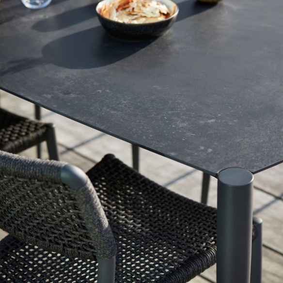The Icon Table, measuring 292x104 cm with a height of 75 cm, is a beautiful representation of design, crafted by Diphano using the highest quality powder-coated aluminum, which promises resistance to weathering and robustness. It also features a ceramic top that ensures easy maintenance, cleanliness, and adds a touch of elegance to your favorite spot at home. This wonderful outdoor table is available in two different combinations: iconic white Carrara ceramic, and black ceramic charcoal with a scratch-resistant feature, making it perfect for outdoor dinners or lunches. Thanks to these two combinations, the Icon Table harmoniously adapts to any type of setting and decor, from a modern garden with a swimming pool to a rustic or classic patio. Moreover, its conical legs make the table stand out iconically from others; two additional features that make this outdoor table unique are: the PVC strap under the table that protects the chairs from potential damage and the adjustable feet. Opting for the Icon Table with a length of 292 cm means choosing a piece that combines practicality, beauty, and innovation, ensuring unlimited enjoyment of your outdoor oasis.