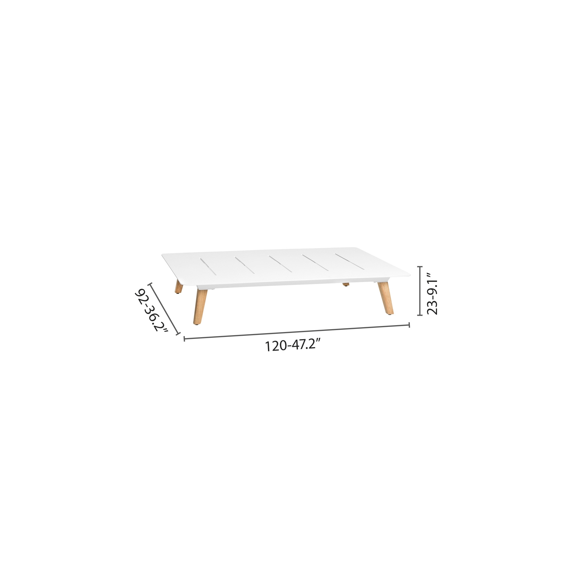 The Link coffee table, measuring 120x92 cm with a height of 23 cm, promises durability and lightness thanks to its high-quality aluminum, and resistance to various weather conditions like rain, humidity, and UV rays thanks to its Teak wood, making it ideal for outdoor use. This unique and elegant piece of design offers spaciousness and practicality, and its simple and minimalist style makes it versatile for any type of furnishing: it can be placed within a classically styled terrace, or in a rustic and modern garden. With its length of 120 cm, the Link outdoor coffee table provides joyful and cheerful lunches with friends and family, or moments of complete relaxation in solitude. The ample surface makes it perfect both as a focal point to gather around and as a complement for placing drinks or books, merging practicality and beauty. The Link coffee table will transform any corner of your home into an oasis of beauty and well-being. This wonderful Link coffee table represents the apotheosis of design and is the perfect union of functionality, innovation, and sophistication. Choose the Link outdoor coffee table and create your cozy and elegant space at home.