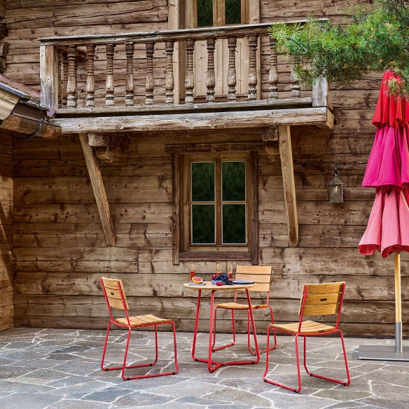 The Balcony outdoor table (diameter 65 cm) is crafted with a base in painted aluminum or steel and a top in Teak. Available in multiple finishes, the Balcony outdoor table is designed for those who wish to enhance small outdoor spaces without sacrificing style and elegance. Perfect for balconies, small terraces, or gardens, the Balcony table features a contemporary yet discreet design, making every setting unique and welcoming. The materials used for its construction are of the highest quality and have been selected to ensure a unique quality and durability. Its lightweight structure, combined with intelligent design, makes moving the Balcony table easy, rendering it an extremely versatile element. Choose the color that suits you and transform every space into an oasis of beauty and comfort. Designed by Thomas Albrecht for Weishäupl.