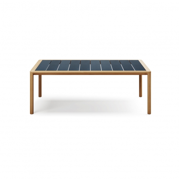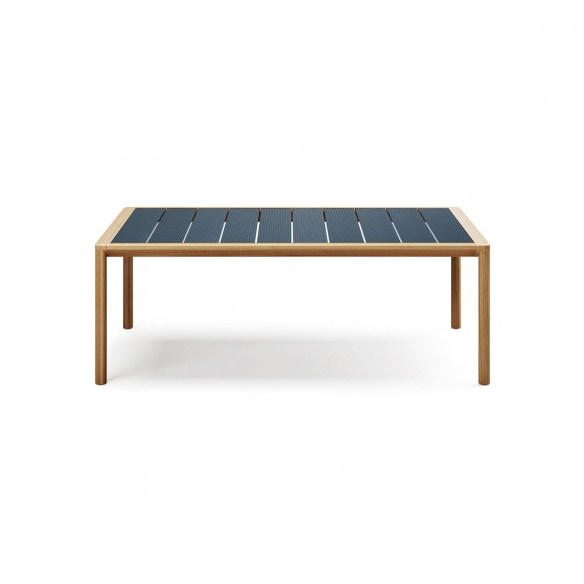 Apache outdoor table made with natural teak structure and top in ceramicized lava stone slabs. Available in 6 colors for the top, the Apache outdoor table also stands out for its new Ottanio finish, available in both smooth and ribbed versions, which adds a touch of modernity and versatility. The Apache outdoor table is ideal for those who want a piece of furniture that combines functionality and refined aesthetics, perfect for completing terraces, gardens or patios. Not only does it serve as a style element, but it also promises to stand the test of time thanks to the materials chosen, ensuring an unparalleled outdoor experience. With the Apache table, every outdoor space is transformed into a sophisticated oasis of relaxation and elegance, inviting meetings and conviviality under the open sky. Designed by Atmosphera Creative Lab.