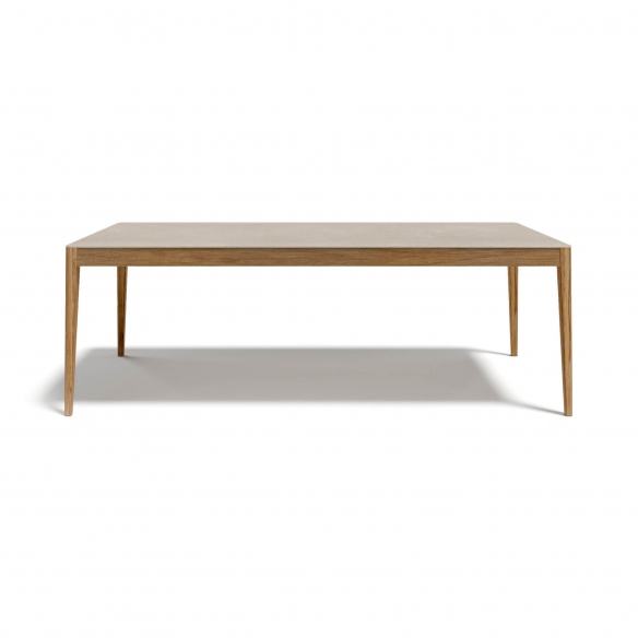 The Dakota outdoor table, measuring 220x100x75h cm, is crafted with a teak structure and porcelain stoneware top. Available in 2 colors, the Dakota outdoor table is noted for its ability to harmoniously blend into any outdoor environment. Elegant lines and timeless charm define Dakota, where the fusion of Teak and porcelain stoneware creates a design piece that transcends fashions and seasons. This table reveals meticulous attention to detail and a choice of materials that emphasize both aesthetic beauty and functionality. Its robust teak structure, known for weather resistance and durability, perfectly complements the porcelain stoneware top, a material valued for its ease of maintenance and ability to withstand temperature fluctuations. The Dakota table is the ideal choice for those seeking a furniture piece that enhances any open space, from gardens to terraces, while offering a practical solution for entertaining guests in an atmosphere of refined conviviality. With Dakota, elegance meets functionality in a piece of furniture destined to become the visual and social centerpiece of any outdoor environment. Designed by Atmosphera Creative Lab.