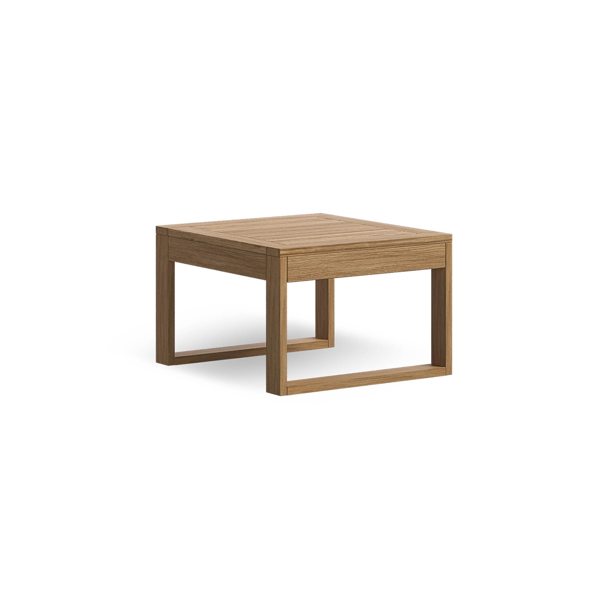 Desert outdoor service table 50x50x33h cm made of solid Asian teak. Perfect for placing next to your garden sofas or by the pool, the Desert coffee table offers the ideal surface for placing drinks, books or outdoor decorations, enriching the environment with its warm charm. Its sturdy structure and elegant design make it a versatile element for any outdoor space, while ensuring a welcoming and organized atmosphere. With the Desert outdoor serving table, bring the comfort, style and quality of solid Asian teak to your outdoor space. Designed by Atmosphera Creative Lab.