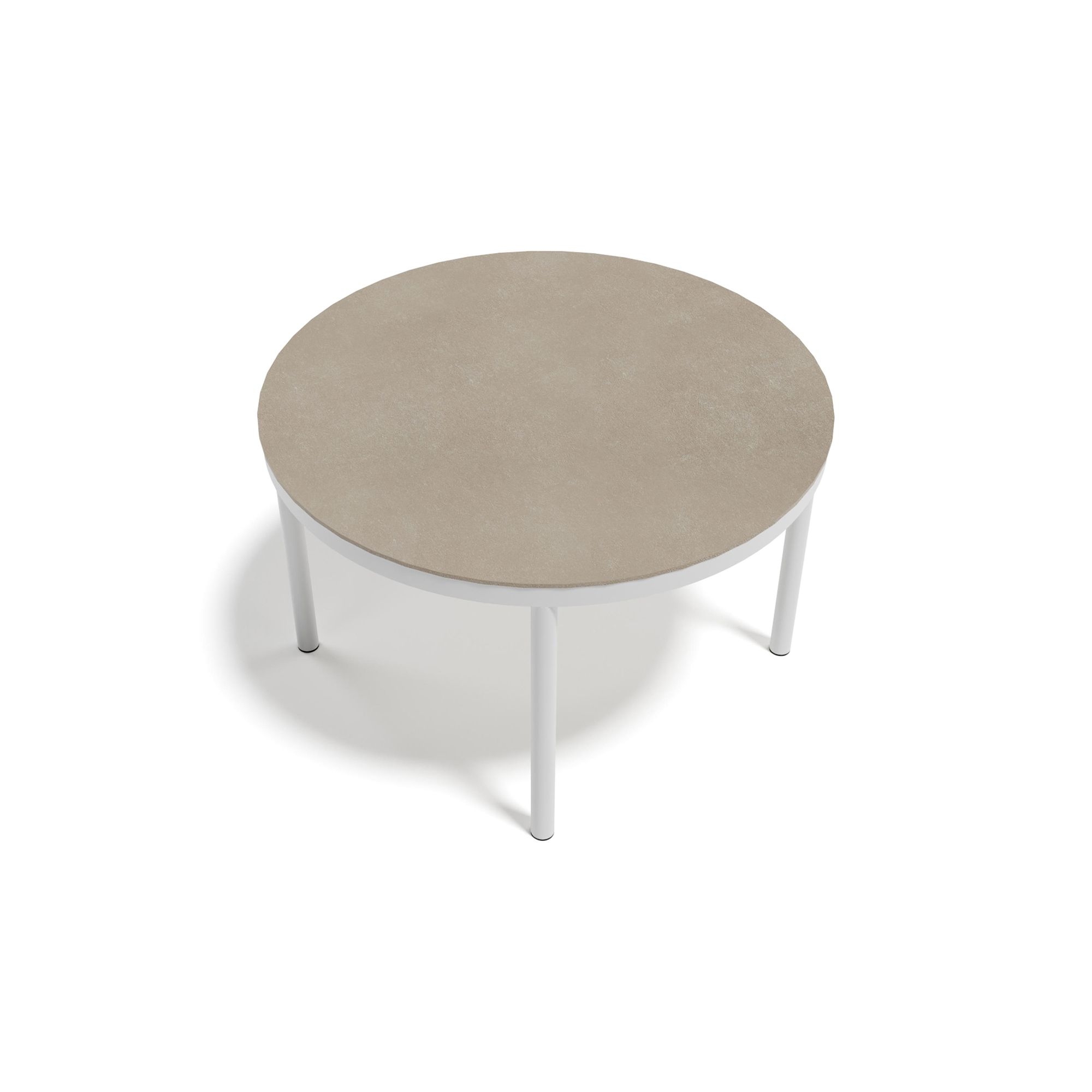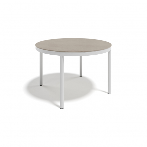 Dulton outdoor table Ø119x78 cm made with white aluminum and graphite structure with HPL or stoneware top, available in two colours. The Dulton outdoor table represents a refined and elegant solution for those who want to enhance outdoor spaces, combining functionality and minimal design. This table, distinctive for its round shape, becomes a privileged meeting point, ideal for both residential and hospitality environments, such as cafes, outdoor restaurants or panoramic terraces. The round design of the table facilitates conversation and exchange, making it perfect for moments of conviviality and to create a welcoming and inclusive atmosphere. Whether for a morning coffee in solitude, a family lunch or a dinner under the stars with friends, the Dulton outdoor table guarantees comfort and style, becoming a favorite choice for anyone who wants a quality piece of furniture for their space outdoors. The versatility of its design allows the Dulton table to adapt to various needs, combining practicality with pleasant aesthetics: this makes it an incomparable element in outdoor furnishings. Designed with particular attention to durability and maintainability, the table is designed to resist over time, maintaining its charm unchanged. For those looking for a balance between elegance and functionality, the Dulton outdoor table proves to be the ideal choice, capable of transforming any outdoor space into a corner of paradise. Designed by Atmosphera Creative Lab.