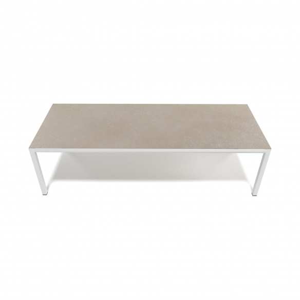 The Flair rectangular outdoor table 260x100x78h cm is crafted with a white or graphite aluminum structure and a top in HPL or ceramic, available in two colors. This outdoor rectangular table is a sophisticated addition to any open space, blending functionality with aesthetically pleasing design. Designed by Atmosphera Creative Lab, this table features generous dimensions that make it perfect for hosting large groups, offering unforgettable moments outdoors with family and friends. Made with a high-quality aluminum structure, it is available in white or graphite finishes, which not only ensure excellent resistance to weather conditions but also add a touch of modern elegance to your garden, balcony, or terrace. The tabletop, available in innovative materials like HPL or ceramic, is designed to stand the test of time, maintaining its beauty without the need for frequent maintenance and ensuring easy cleaning. The ample size of the Flair rectangular table makes it the ideal solution for setting up outdoor dining areas, allowing you to enjoy lunches and dinners al fresco in full comfort and style. Its clean lines and minimalist design make it suitable for various outdoor contexts, from the most modern and sophisticated to the more traditional, seamlessly integrating with various types of seating. Investing in the Flair rectangular outdoor table means choosing a piece of furniture that perfectly combines design, durability, and functionality, transforming any outdoor space into a welcoming and refined environment.