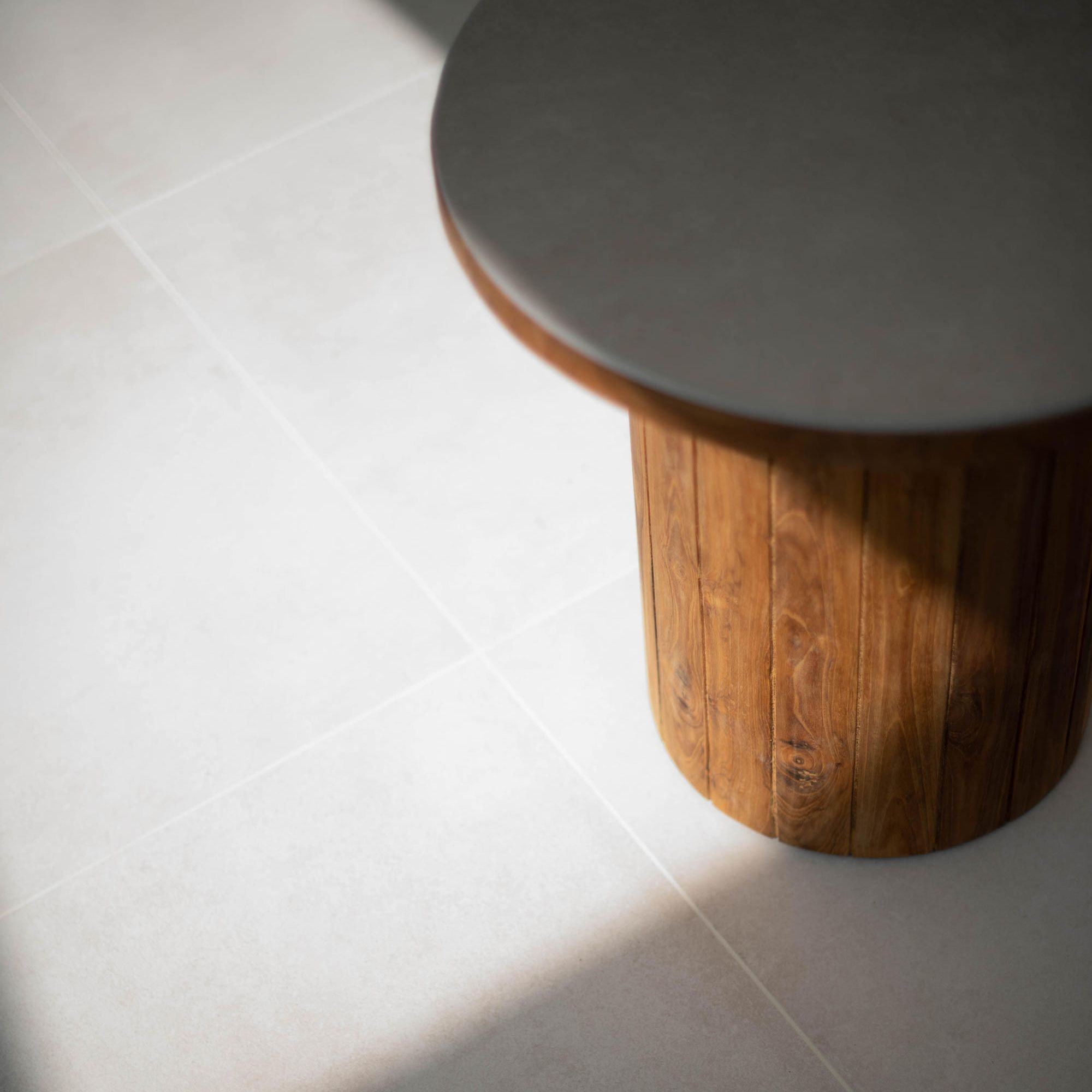 The Frisbee outdoor service table, measuring Ø50x51h cm, is crafted with a structure in solid Asian teak and a top made of stoneware or glossy enameled ceramic. Available in 6 colors, the Frisbee outdoor service table stands out for its essential and modern design, where high-quality materials play a leading role, giving the product a distinctive and valuable appearance. With its sturdy solid Asian teak structure and the addition of tops in stoneware or glossy enameled ceramic, the Frisbee table represents a perfect balance between functionality and aesthetics, enhancing the collection with elegant and characterful finishes. Designed for outdoor use but also adaptable for indoor environments, the Frisbee table offers maximum resistance to weathering, ensuring durability and stability over time. Its versatility makes it ideal as a support surface alongside lounge seating, in outdoor areas such as terraces, gardens, or poolside, helping to create a sophisticated and welcoming environment. The choice of materials is not only a guarantee of resistance but also of style: the solid teak brings a natural warmth, while the tops in stoneware or ceramic add a touch of polished elegance, making each Frisbee table unique and capable of adapting to different stylistic solutions. Whether used to serve refreshments during an outdoor event, as a practical everyday support, or as a design element in a refined outdoor setting, the Frisbee service table is the optimal choice for those who do not want to renounce durability and luxury in their outdoor furnishings. Designed by Atmosphera Creative Lab.
