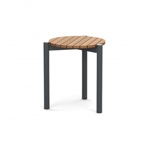 The Lobster outdoor service table, crafted with an aluminum structure for outdoor use and a solid Asian teak top, is available in 3 colors and represents the ideal complement to enhance the experience of outdoor living, merging practicality with sophisticated design. Engineered to withstand the challenges of outdoor spaces, this table stands out for its aluminum structure, a material chosen for its lightness, durability, and corrosion resistance. The support surface is made of solid Asian teak, known for its strength and ability to resist the elements, ensuring the table's long life and consistently elegant appearance. With its compact dimensions and ease of movement, the Lobster service table is highly versatile: it can be used to serve refreshments and snacks during outdoor gatherings, or as a support for decorative items, books, and plants, enhancing the outdoor environment with functionality and style. Its clean and modern aesthetic makes it suitable for any outdoor setting, from minimalist gardens to more sophisticated spaces, offering a touch of refined simplicity. Designed by Atmosphera Creative Lab.