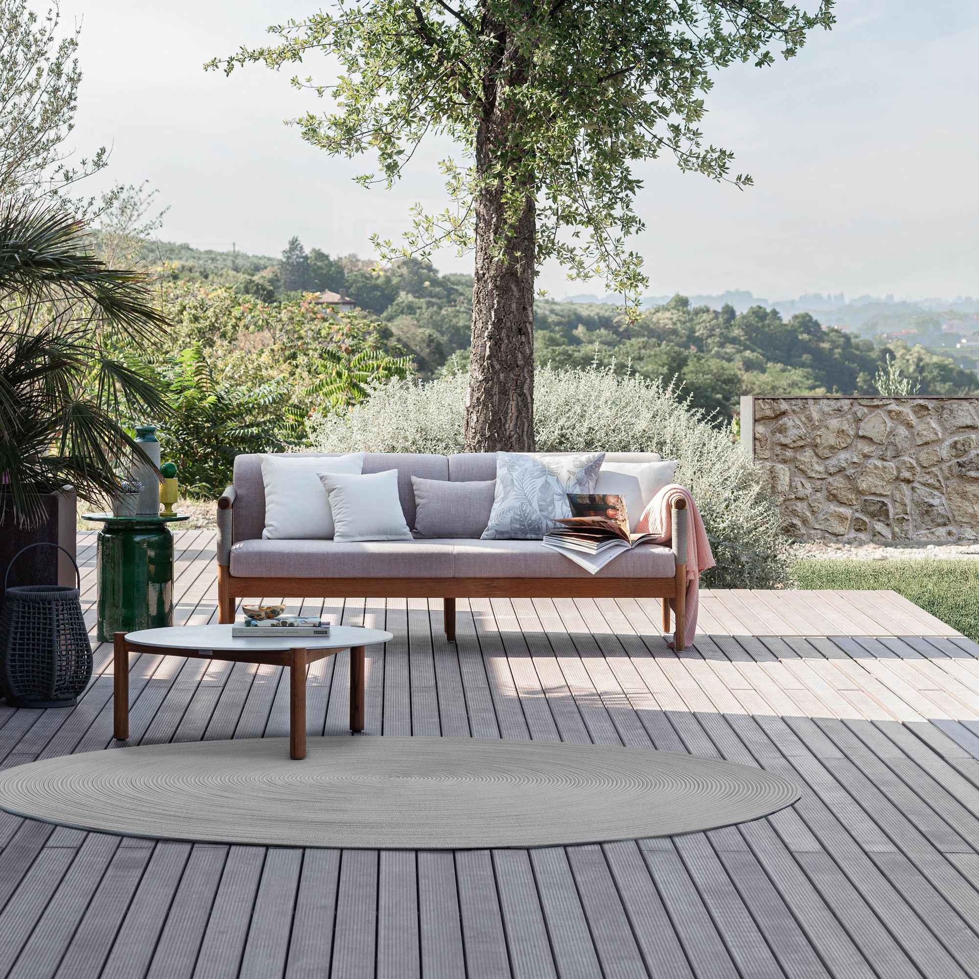 Lodge outdoor round low table Ø96x38.5h cm, crafted with a solid Asian teak structure and stoneware top. Available in 2 colors, the Lodge outdoor round low table is the perfect choice for those wishing to add a touch of sophistication to their outdoor space. Its round design fosters conviviality and blends harmoniously into various types of outdoor settings, making every meeting a true sharing experience. Available in different finishes, the Lodge table can accommodate even the most refined tastes, bringing a breeze of contemporary style together with the tradition of quality wood. The generous dimensions ensure comfort and versatility, making it ideal for gatherings in the garden, terrace cocktails, or simply as a decorative element that will enhance the patio. The Lodge low table is more than just a piece of furniture: it is an invitation to enjoy outdoor life, surrounded by beauty and well-made craftsmanship. Do not miss the opportunity to transform your outdoors into an area of relaxation and design with the Lodge table, a symbol of enduring outdoor elegance. Designed by Atmosphera Creative Lab.