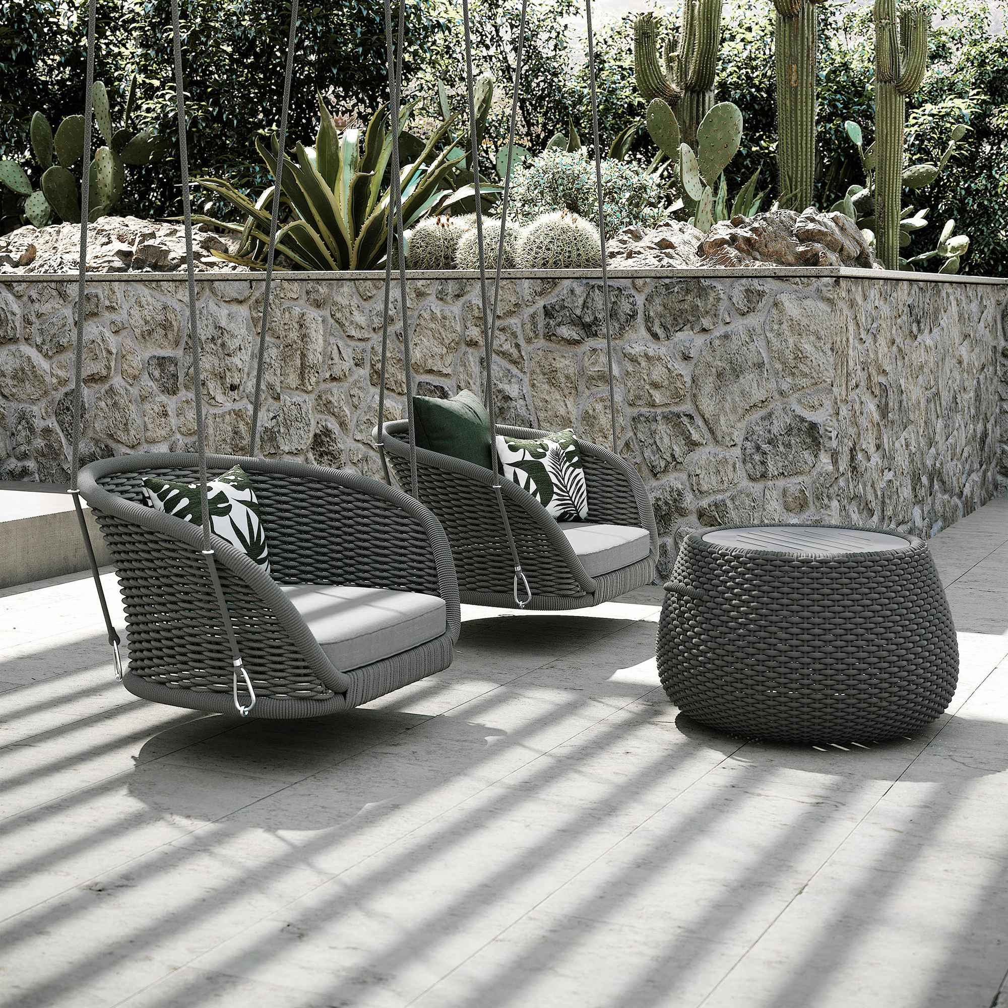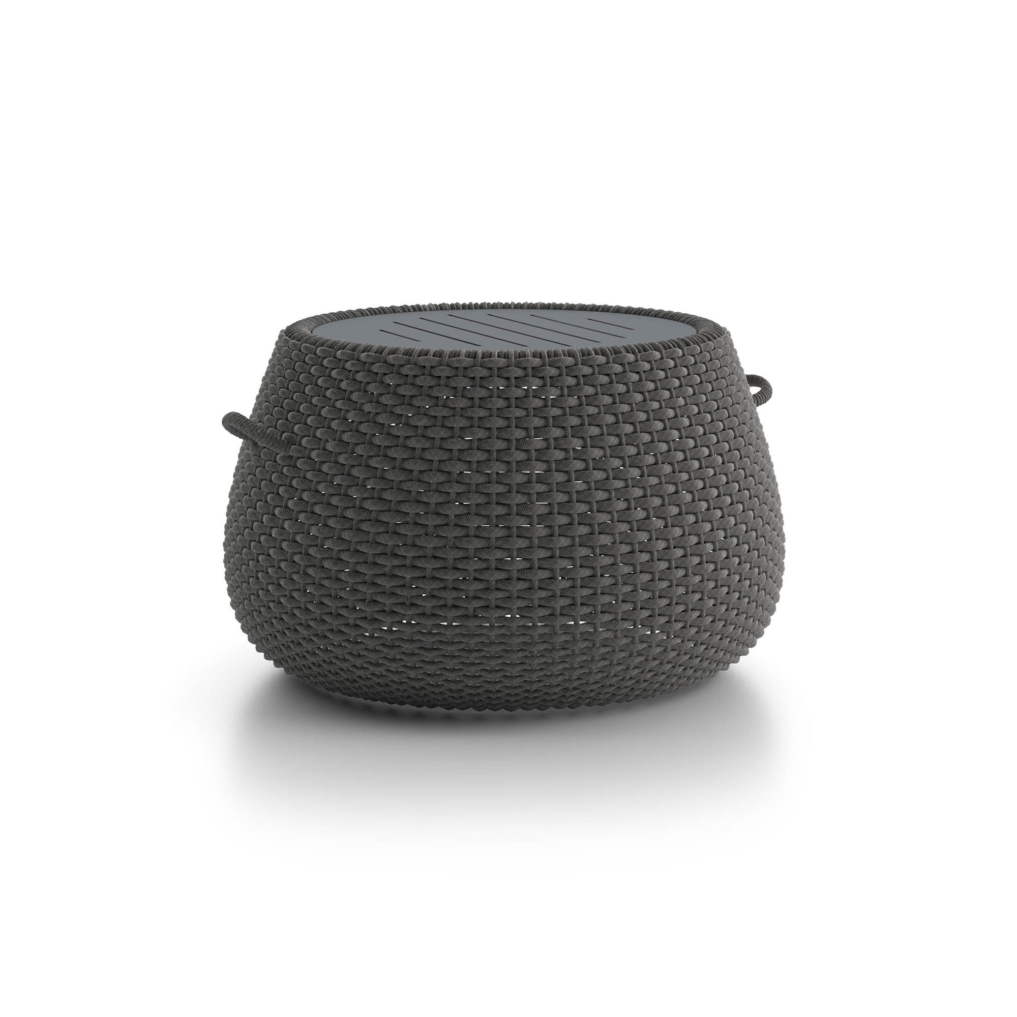 Discover the Ludo outdoor service table, Ø71x42h cm, crafted with an aluminum structure paired with handwoven Teflon acrylic fiber cords and an aluminum tabletop. Available in 2 stunning colors, the Ludo outdoor service table is the ideal choice for those looking to add a touch of elegance and practicality to their outdoor space. With dimensions optimized for outdoor serving, this table is perfect for holding beverages, books, or decorations, making every outdoor moment even more enjoyable. The combination of handwoven cords with the solid aluminum tabletop is not only visually appealing but also ensures exceptional durability and ease of maintenance, ideal for everyday use in gardens, terraces, or pool areas. Beyond its functionality and distinctive style, the Ludo table is designed for longevity, offering water resistance, UV ray resistance, and quick drying capabilities. These features make it not just a stylish furnishing addition but also a lasting investment for any outdoor space. Designed by Atmosphera Creative Lab.