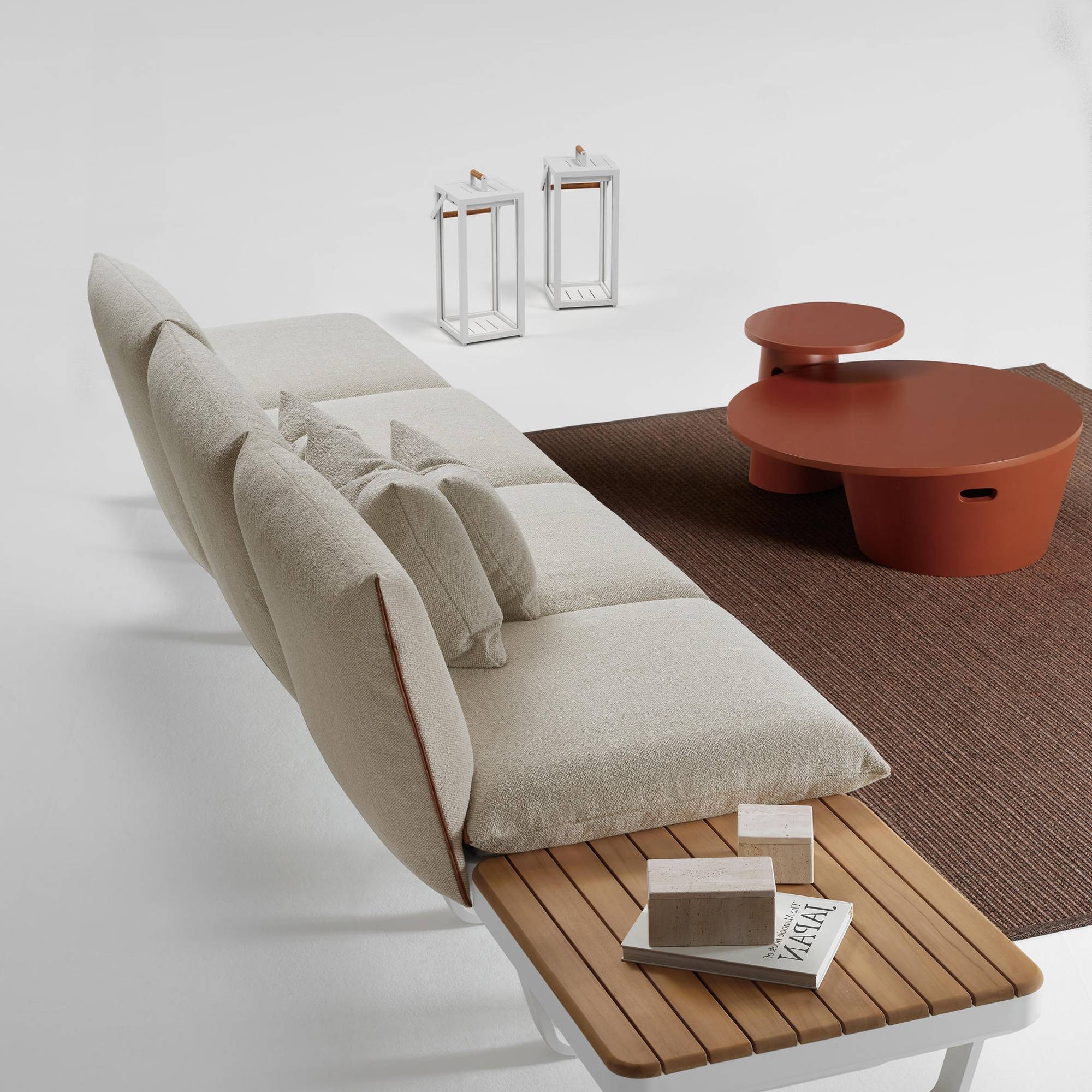 The Totem outdoor service table, made of lightweight Siena Terracotta finish concrete, offers the ideal solution for those wishing to add a touch of style and practicality to their outdoor spaces. This piece of furniture, featuring a unique and functional design with an asymmetrical cylindrical base and a durable top surface, is perfect for holding drinks, books, or decorations, enhancing any environment with its elegant and contemporary presence. Constructed with high-quality materials, the Totem table is designed to withstand outdoor elements, ensuring durability and maintaining its charming appearance over time. The sophisticated finish and clean lines make it versatile and suitable for any outdoor decor style, from design-forward terraces to more classic gardens, offering both an aesthetically pleasing and functional solution. Whether used as an additional surface by the poolside or as a distinctive element in a relaxation corner, the Totem outdoor service table stands out for its elegance and practicality, becoming a must-have for outdoor furnishing. Designed by Atmosphera Creative Lab.