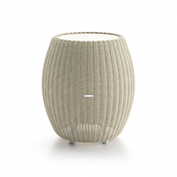 The Twiga outdoor service table, measuring Ø62x56.5h cm, is crafted with an outdoor epoxy-painted aluminum structure, a hand-woven water-solidified polyethylene extrusion, and an outdoor fossil stone top. Available in 2 colors, the Twiga outdoor service table represents a sublime blend of utility and sophistication, establishing itself as an essential element in organizing your outdoor space. Designed to fulfill the needs for durability and style, it features an epoxy-painted aluminum structure, ideal for withstanding weather conditions and outdoor environments. The surface is enhanced with a hand-woven, water-solidified polyethylene extrusion detail that, in addition to highlighting the table's beauty, ensures its strength and longevity. Twiga is not only aesthetically pleasing but also a champion of functionality: washable, easy to move yet gentle to the touch, and environmentally friendly due to its recyclability. Sturdy in the toughest conditions, this table is unfazed by exposure to water, salt, UV rays, snow, and weathering, making it the perfect solution for all types of outdoor settings, from terraces to poolside. Designed by Atmosphera Creative Lab.