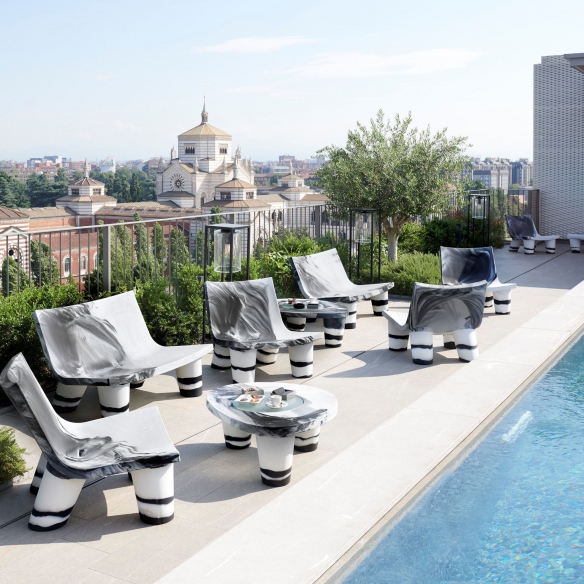 The Low Lita outdoor coffee table (10th Anniversary Edition) is an iconic product that continues to be a bestseller, created by Slide entirely from 100% recyclable polyethylene, a material ensuring resistance, versatility, and durability. This magnificent coffee table boasts a design unlike any other, adorned with a special two-tone texture developed in collaboration with Paola Navone, capable of bringing class and luxury to your garden, veranda, or a spacious terrace. Its structure is designed with fluid and unique lines, which lends a dynamic and elegant air to the surrounding environment; its top is very spacious and can accommodate appetizers, breakfasts, or various beverages, perfect for parties among friends or family gatherings. Low Lita is a true masterpiece that combines functionality, innovation, and refined aesthetics, and promises not just to endure over time but to set new standards in style and comfort for outdoor furnishings. Designed by Paola Navone for Slide.